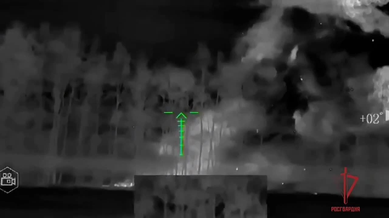 Кадры ночной работы мобильной огневой группы Росгвардии по отражению беспилотных атак противника в приграничном регионе.