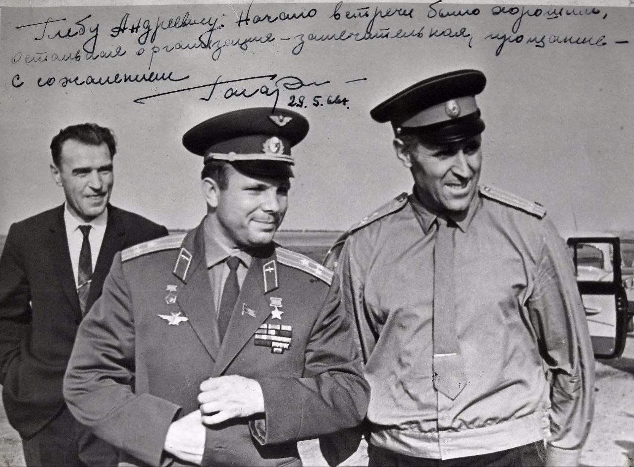 Итог общения первопроходца космоса и брянского стража правопорядка хранит уникальный гагаринский автограф Глебу Андреевичу на их совместном фотоснимке: «Начало встречи было хорошим, дальнейшая организация – замечательная, прощание – с сожалением. Ю.Гагарин».