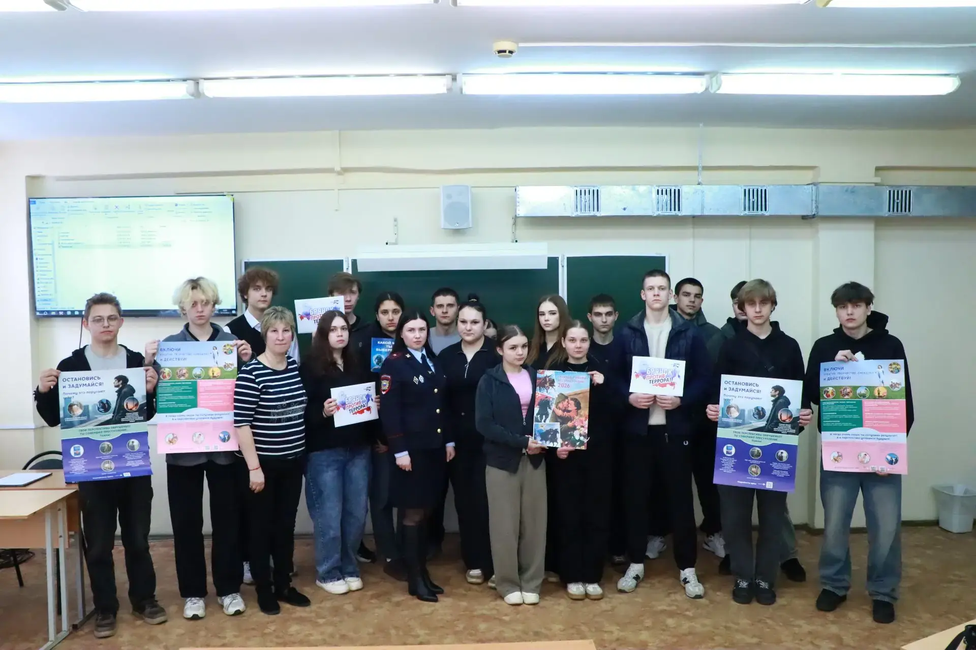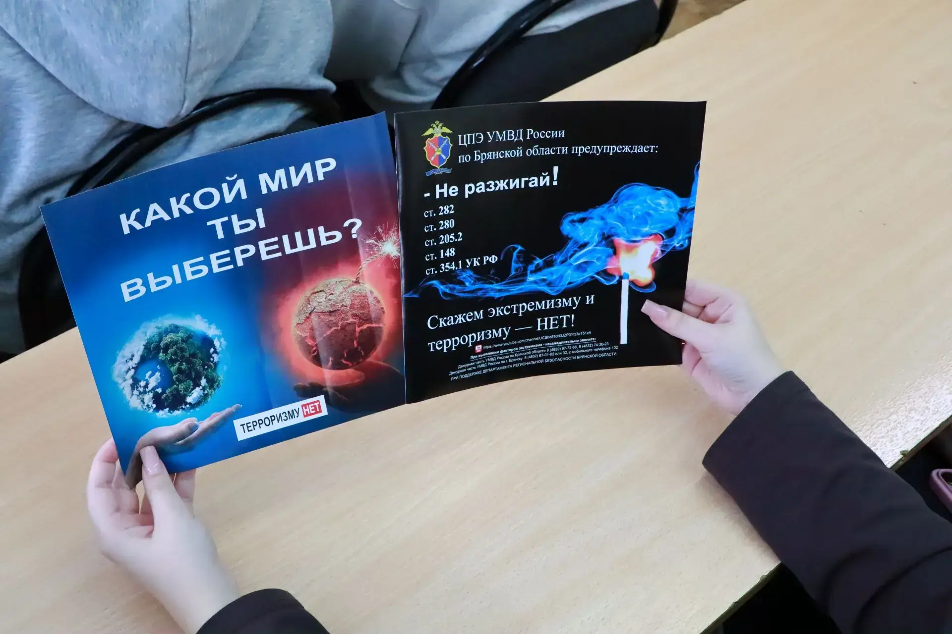 Ребятам показали документальный фильм о задержании экстремистов, вручили памятки с полезной инфографикой.