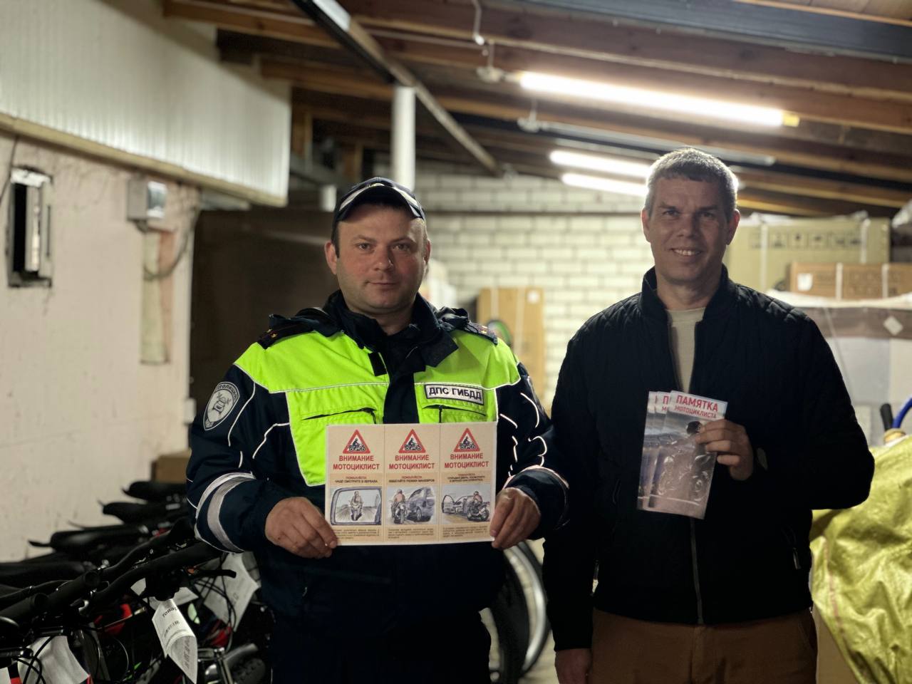 В завершение мероприятий в торговых точках размещены информационные материалы, содержащие правила безопасного управления велосипедами и мототранспортом, а также рекомендации по использованию защитной экипировки и световозвращающих элементов.