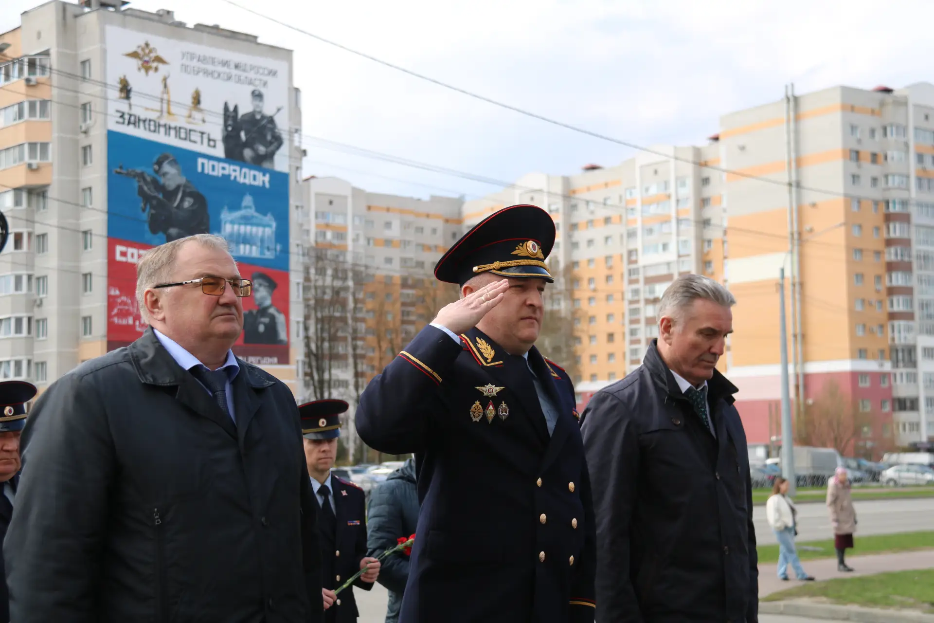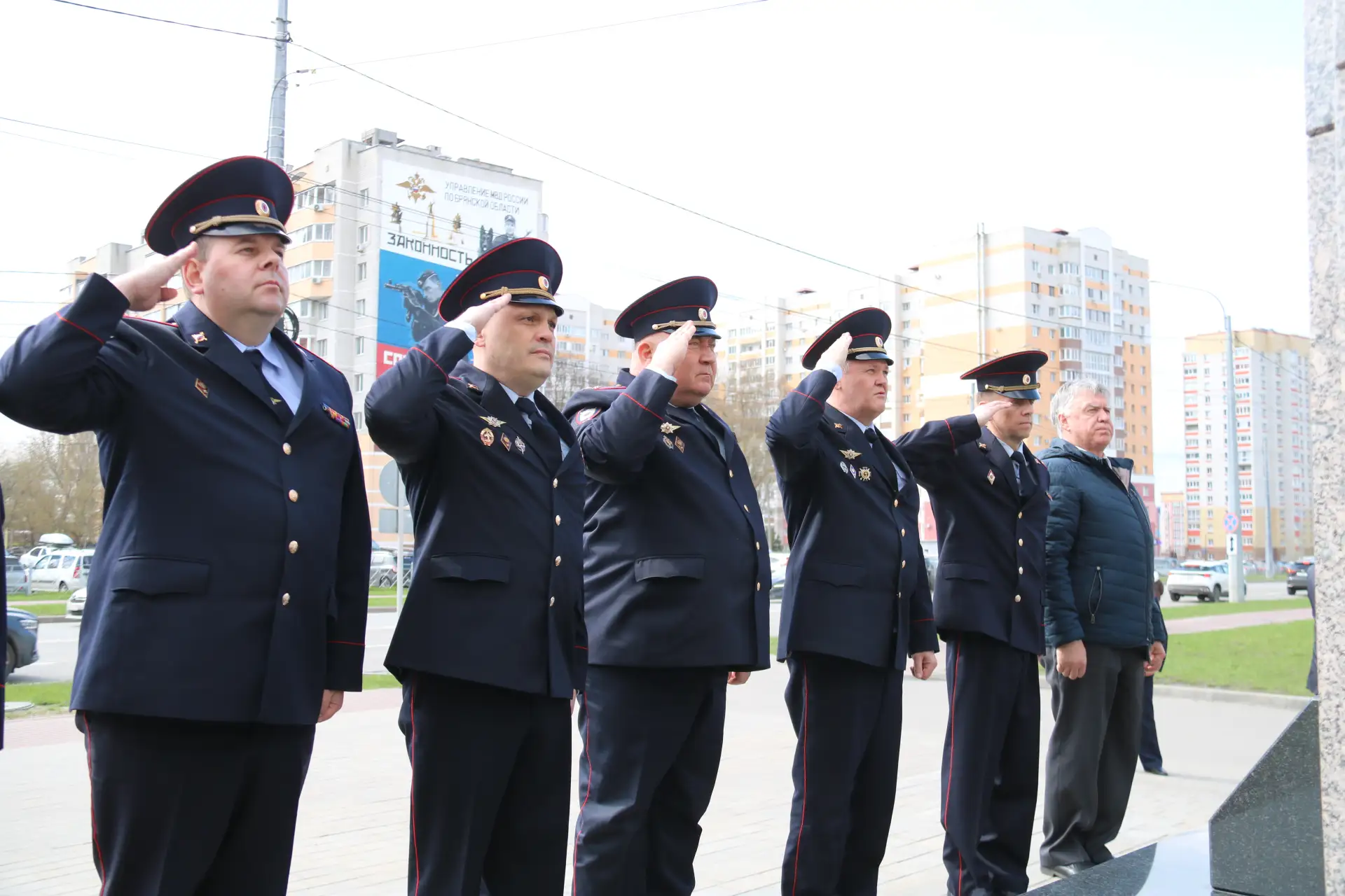 Начальник УМВД России по Брянской области генерал-майор полиции Алексей Солдатов, члены коллегии регионального полицейского ведомства и председатель ветеранской организации Игорь Пудиков возложили цветы к подножию мемориала «Защитникам правопорядка – сотрудникам органов внутренних дел, погибшим при исполнении служебного долга».