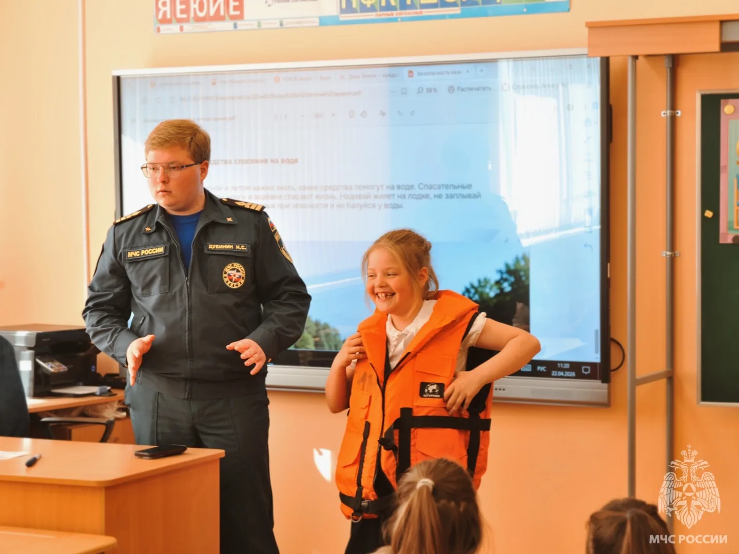 Урок для первоклассников был организован в интерактивной форме. Сотрудники МЧС России рассказали детям о правилах поведения при пожаре и задымлении, а также о мерах предосторожности на воде в летний период. Ученики 1 «А» класса смогли примерить боевую одежду пожарного, спасательный жилет, а также получили полезные памятки о безопасности.
