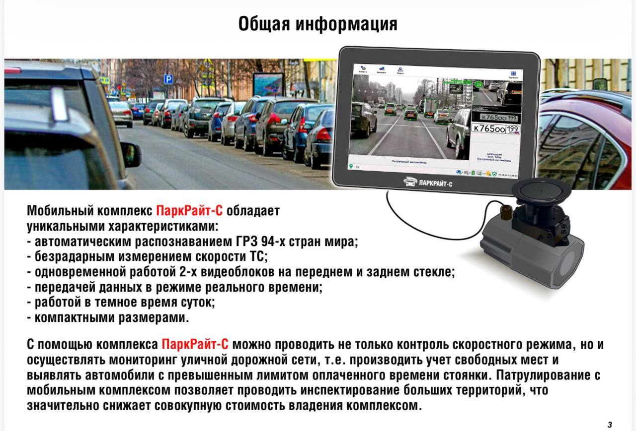 Комплекс «ПаркРайт-С» предназначен для фиксации нарушений Правил дорожного движения и измерения скорости транспортных средств безрадарным методом — на основе анализа видеоизображения.