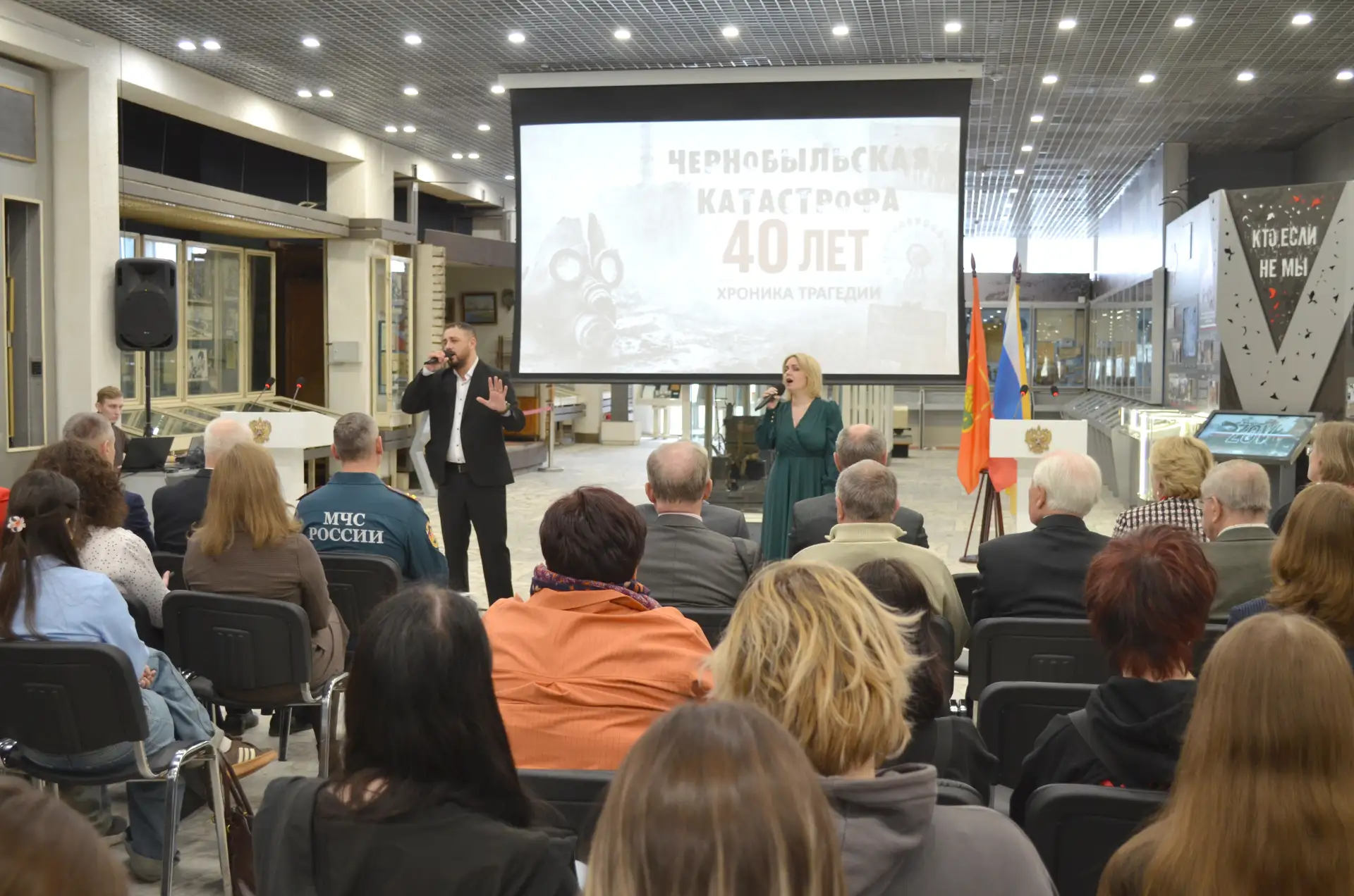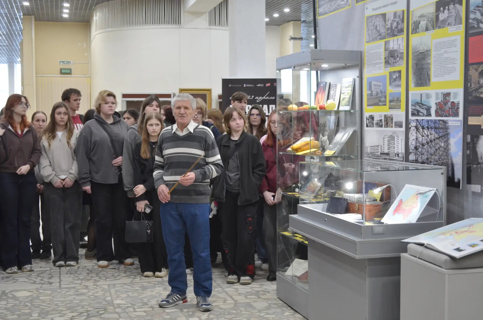 В завершение мероприятия состоялась экскурсия по выставочным экспонатам, рассказывающим о ликвидации последствий катастрофы на Чернобыльской АЭС в 1986 году и подвиге Андрея Фроленкова в 2022 году. Специальные приборы, книги, картографические материалы, предметы быта, фотохроника позволили всем получить более глубокое представление о Чернобыльской аварии и современных угрозах.