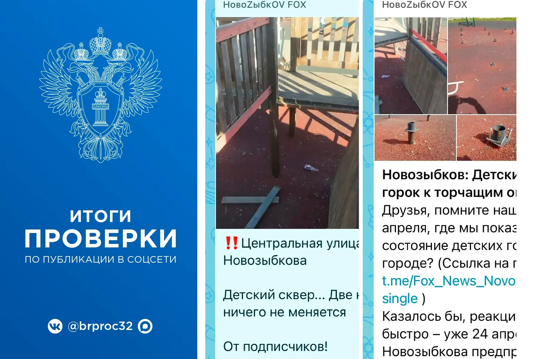 Новозыбковская межрайонная прокуратура провела проверку по публикации в социальной сети о ненадлежащем содержании детской игровой площадки.