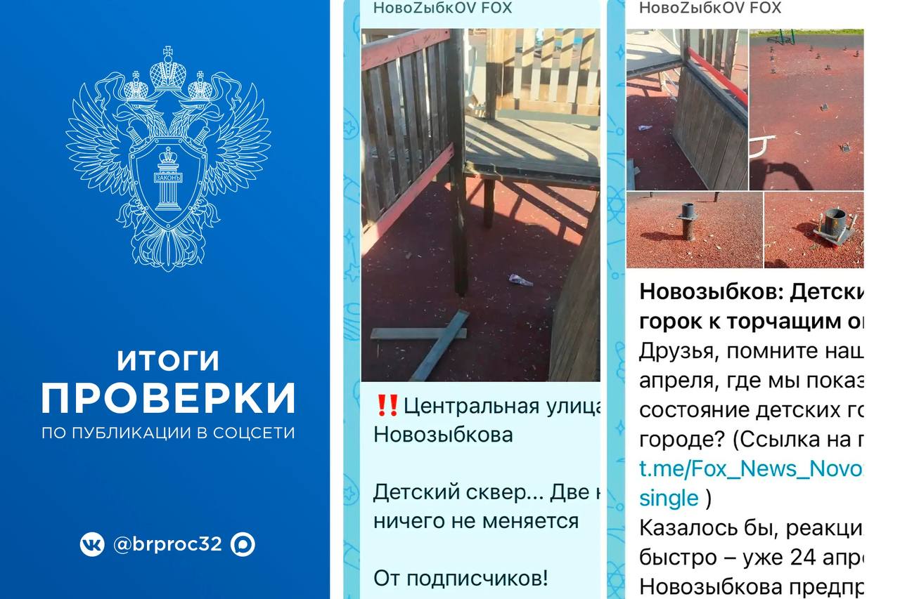 Новозыбковская межрайонная прокуратура провела проверку по публикации в социальной сети о ненадлежащем содержании детской игровой площадки.