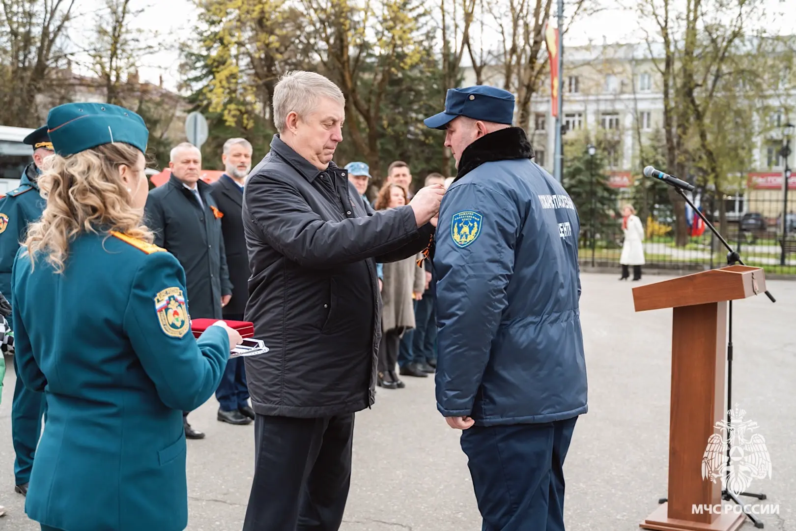 В торжественной церемонии принял участие губернатор Брянской области Александр Богомаз. Он лично поздравил сотрудников с заслуженными наградами — медалями «За отвагу на пожаре», медалями «За спасение погибавших» и почётными грамотами — и поблагодарил их за отвагу и профессионализм.