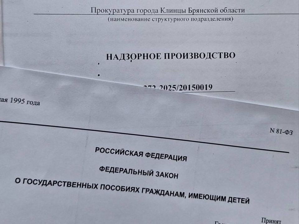 Прокуратурой города Клинцы проведена проверка по обращению местной жительницы об отказе в назначении единовременного пособия при рождении ребенка.Установлено, что ОСФР по Брянской области необоснованно отказано женщине в назначении выплаты...