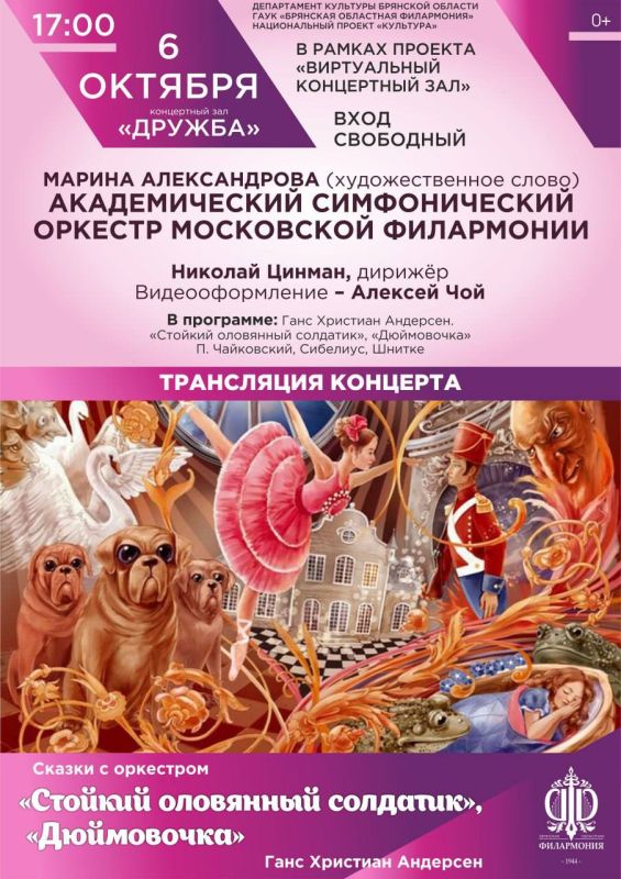 6 октября в 17.00 в концертном зале «Дружба» состоится показ программы «Сказки с оркестром: «Стойкий оловянный солдатик», «Дюймовочка».В концерте принимают участие:Академический симфонический оркестр Московской филармонии Николай Цинман...
