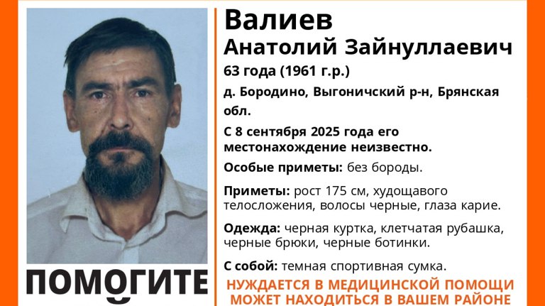 Пропавшего в Брянской области 63-летнего Анатолия Валиева нашли живым