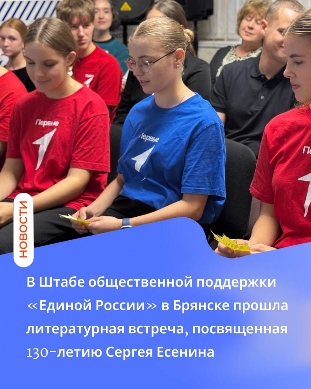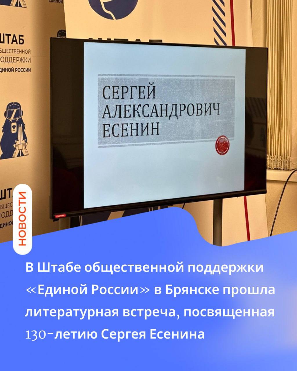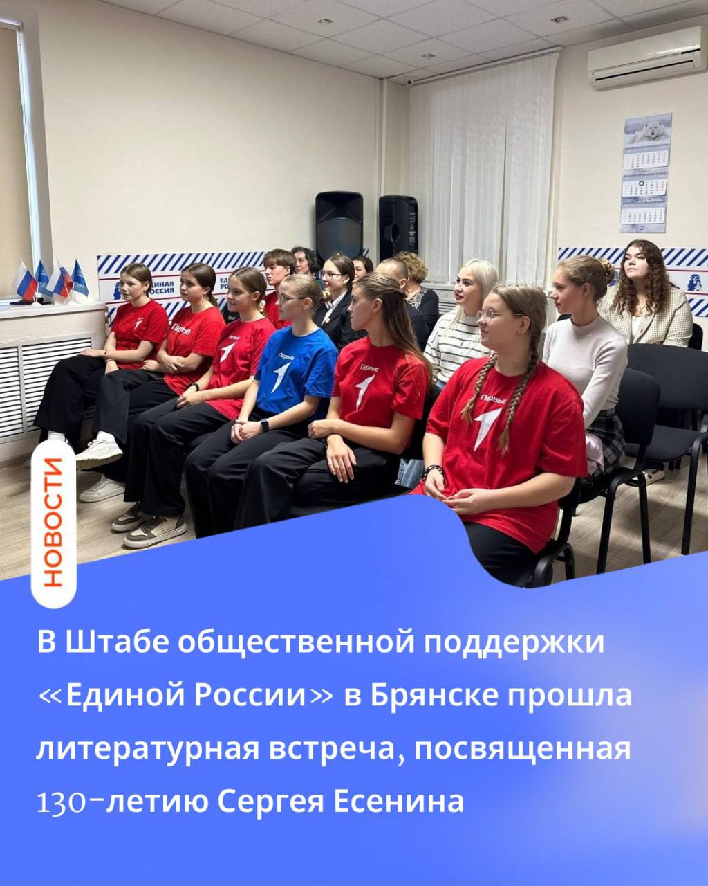 В Штабе общественной поддержки Партии «Единая Россия» в Брянске прошла литературная встреча, посвящённая 130-летию со дня рождения великого русского поэта Сергея Есенина.