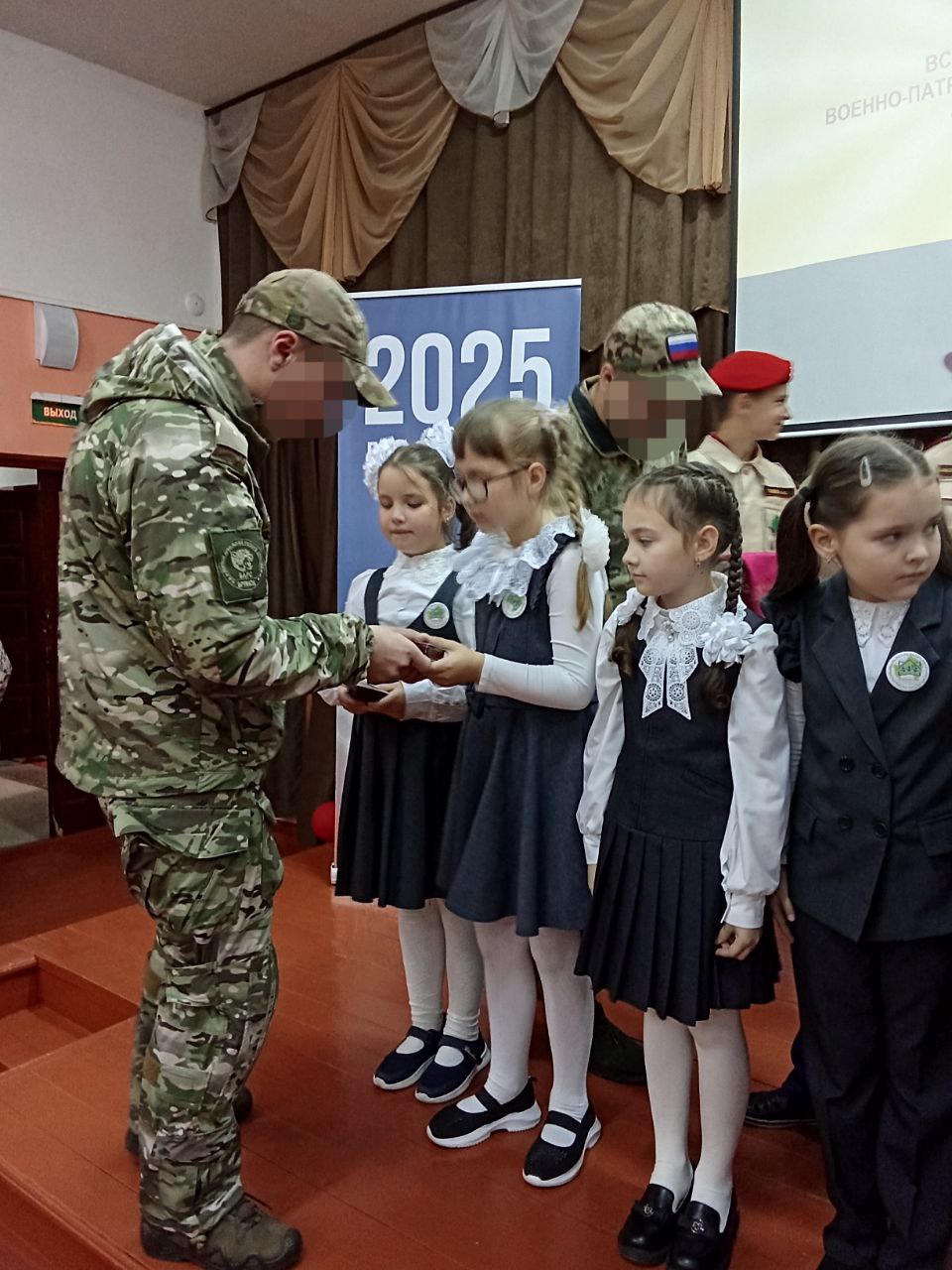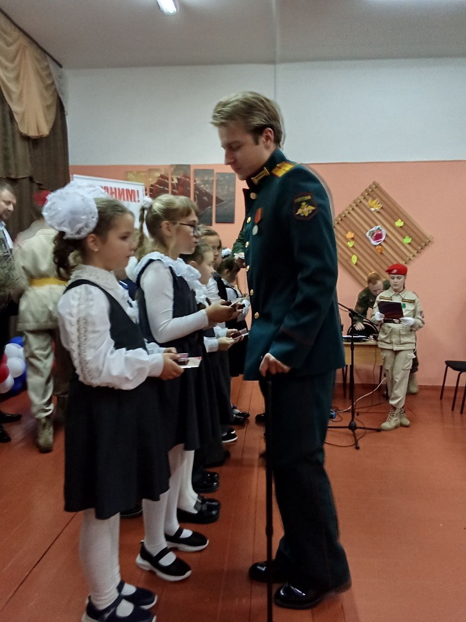 50 обучающимся вручены значки юнармейца, книжки. Ребята торжественно зачитали клятву юнармейца и исполнили гимн ЮНАРМИИ.