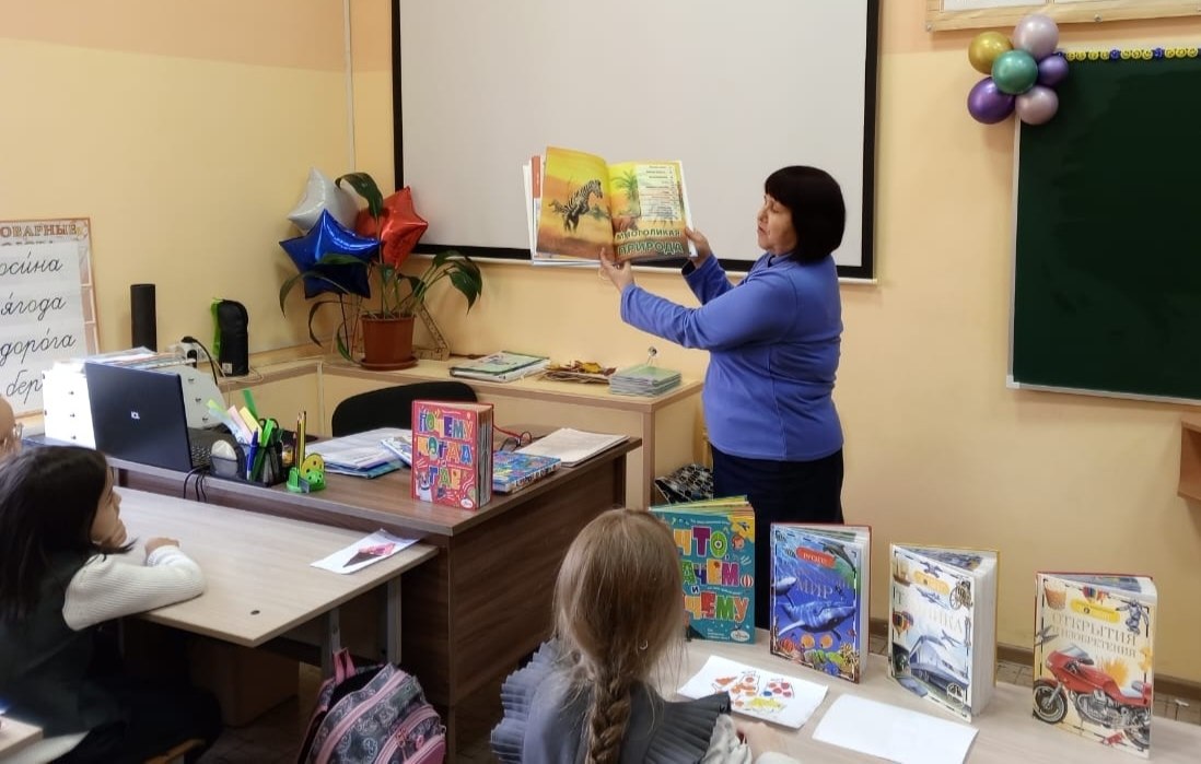 13 октября для учащихся СОШ №2, посещающих группу продлённого дня, ведущим библиотекарем детской библиотеки Заступенко М.В. был проведен библиографический урок "Сто тысяч "Почему" гуляют по планете". Ребята узнали о том, какие энциклопедии бывают, как они устроены.