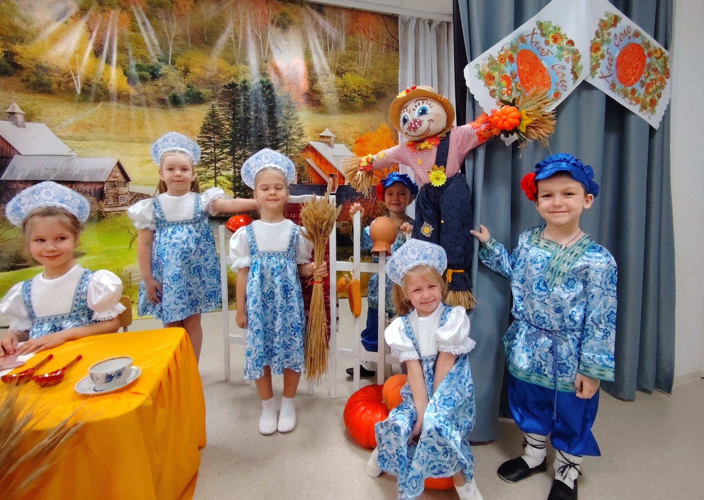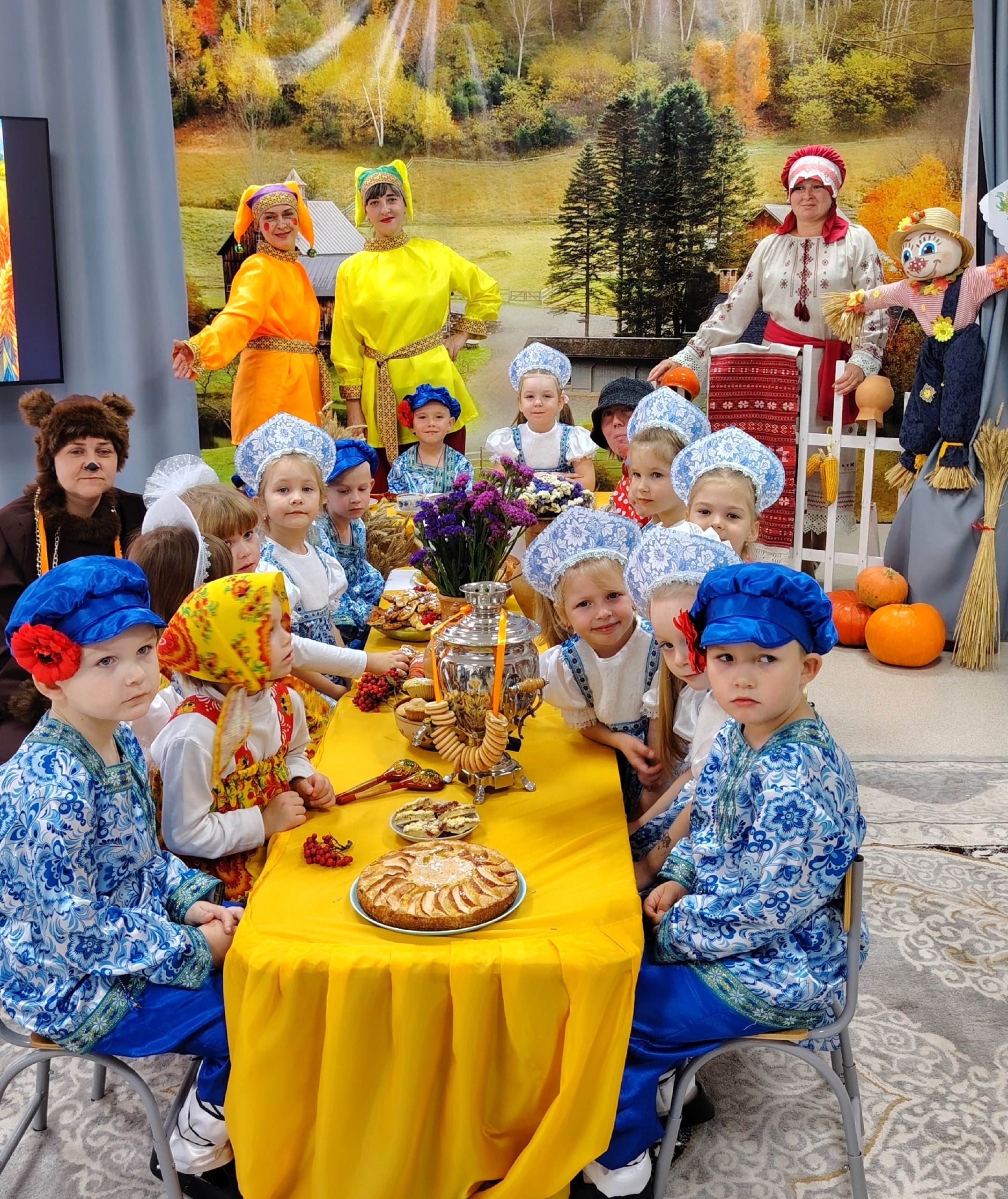 Воспитанники предстали перед нами в красочных народных костюмах, словно сошедшие со страниц старинных сказок. Гостями на празднике были веселые затейники- Скоморохи, с которыми ребята пели задорные частушки, задушевные песни о хлебе и щедром урожае. Дети с удовольствием участвовали в народных играх, которые передавались из поколения в поколение. Это были и веселые хороводы, и ловкие эстафеты, и игры, связанные с процессом выращивания и сбора урожая.