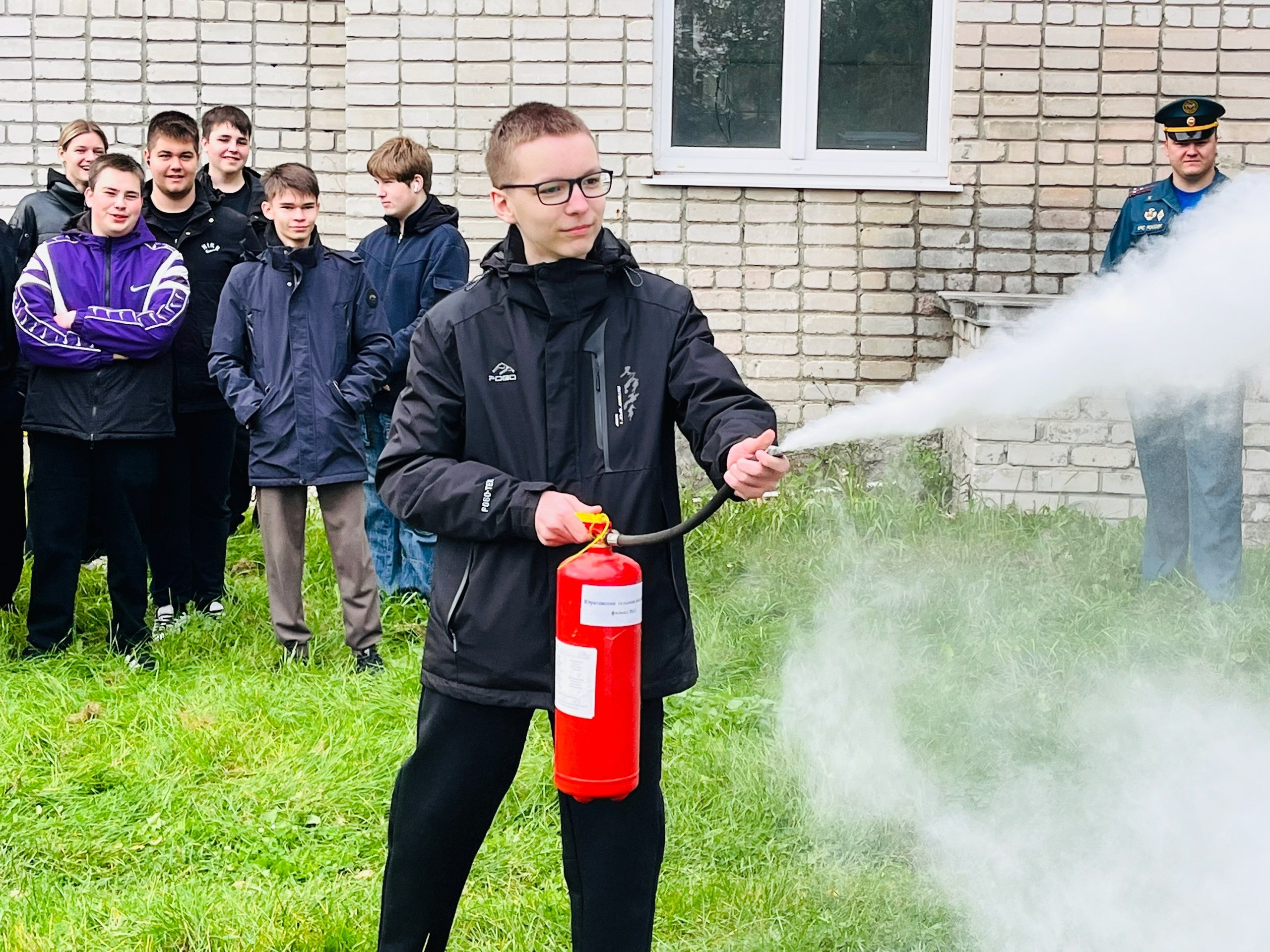 Студенты в ходе экскурсии познакомились с пожарной и специальной техникой, аварийно-спасательным инструментом, а также потренировались в использовании огнетушителя.