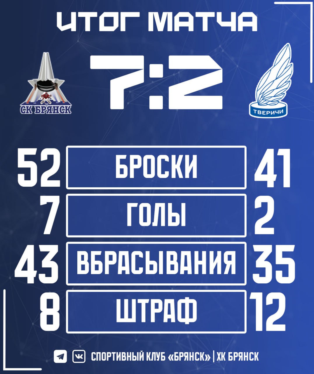 Великолепный результат — 7:2 в пользу брянских хоккеистов!