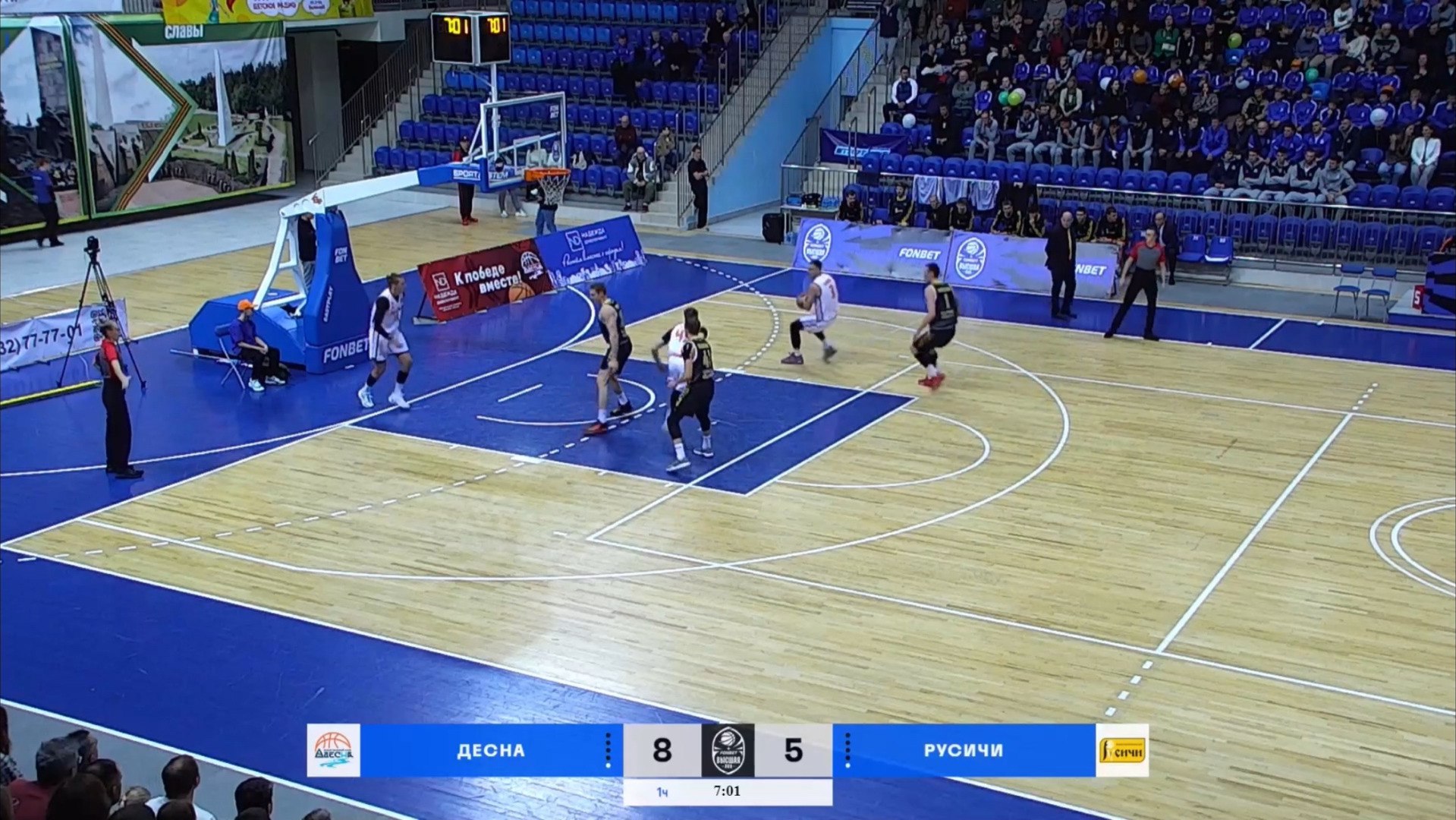 Новый баскетбольный сезон начался с первой домашней победы для брянской команды "Десна". В Дворце единоборств имени Артема Осипенко состоялось захватывающее противостояние между спортсменами брянской "Десны" и курскими "Русичами". Напряженная игра завершилась со счетом 90:83 в пользу хозяев площадки, которые смогли нагнать соперника в концовке встречи и завоевать важнейшие очки на родной арене.