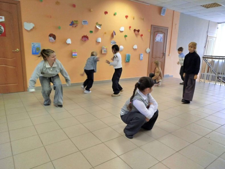 Учащиеся начальных классов стали участниками игротеки «Шире круг». Они поиграли в башкирскую народную игру «Липкие пеньки», якутскую игру «Вестовые», «Удмуртские горелки», посоревновались в игре «Колышки» - излюбленная национальная забава марийцев. Конечно же, не обошлось и без любимых всеми русских народных игр, где ребята продемонстрировали свою ловкость и быстроту.