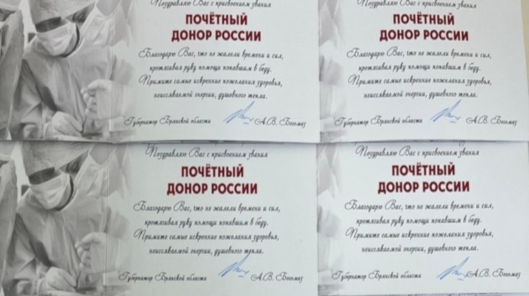 Двенадцать жителей Брянской области стали Почётными донорами России