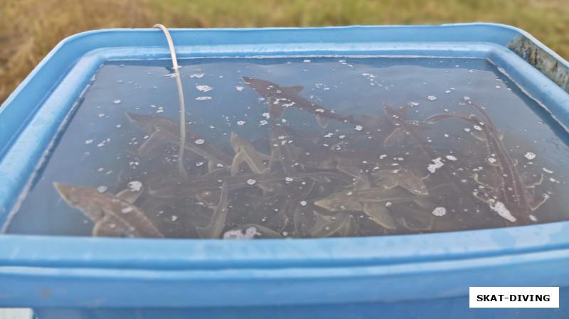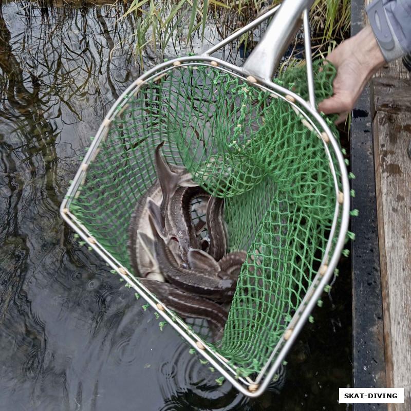 Подводный клуб «Скат» вместе с эко-фермой «Дебрянский осётр» провели отличную акцию — выпустили в городской карьер 60 осетров весом от 400 граммов до килограмма.