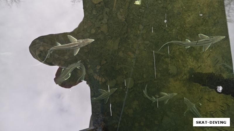 55 осетров теперь осваивают Керамзитное озеро, а ещё 5 — находятся в безопасном загоне у плавучего дома - небольшой «живой музей» для дайверов.
