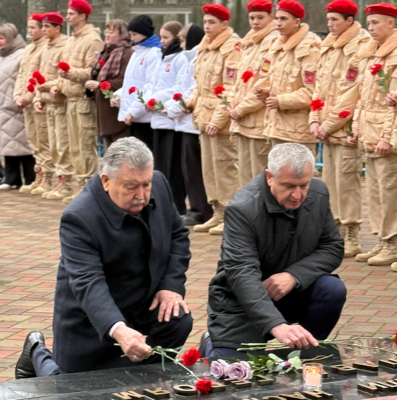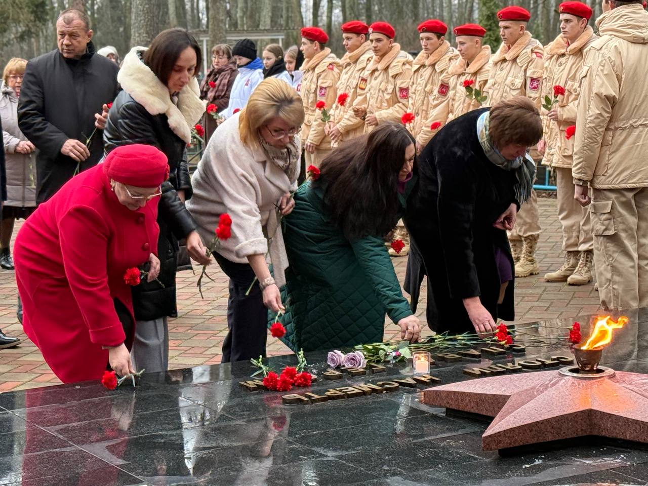 Глава администрации района В.А.Дуда, глава Унечского района А.М.Кусков, их заместители, руководители городских организаций, а также юнармейцы и школьники – все пришли отдать дань уважения. Минута молчания, наполненная глубоким смыслом, и алые гвоздики у Вечного огня стали даром благодарности и признательности тем, кто отдал свои жизни за наше мирное небо.