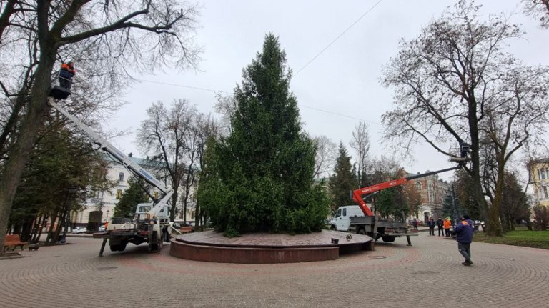В Брянске установили главную новогоднюю ёлку