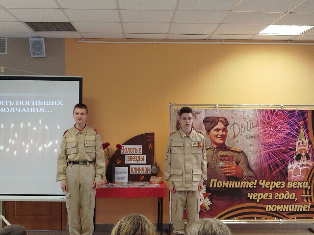 В этот день в детской библиотеке состоялся час мужества «Героям Отечества слава и честь». Он стал итоговым в рамках мероприятий, посвященных Году защитника Отечества и 80-летию Победы в Великой Отечественной войне.