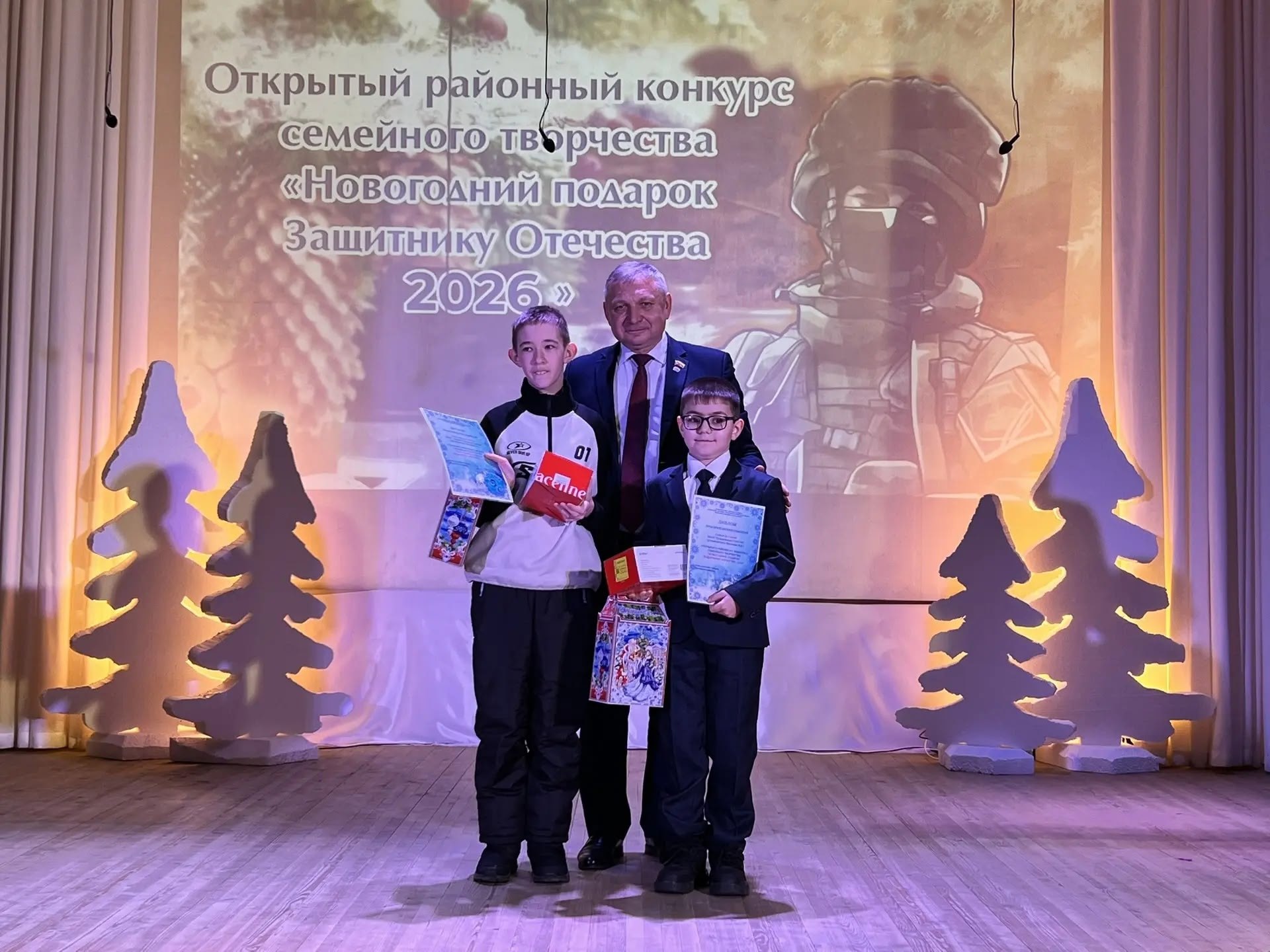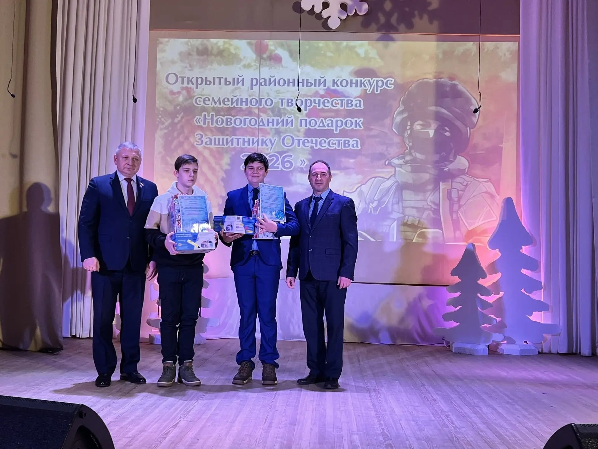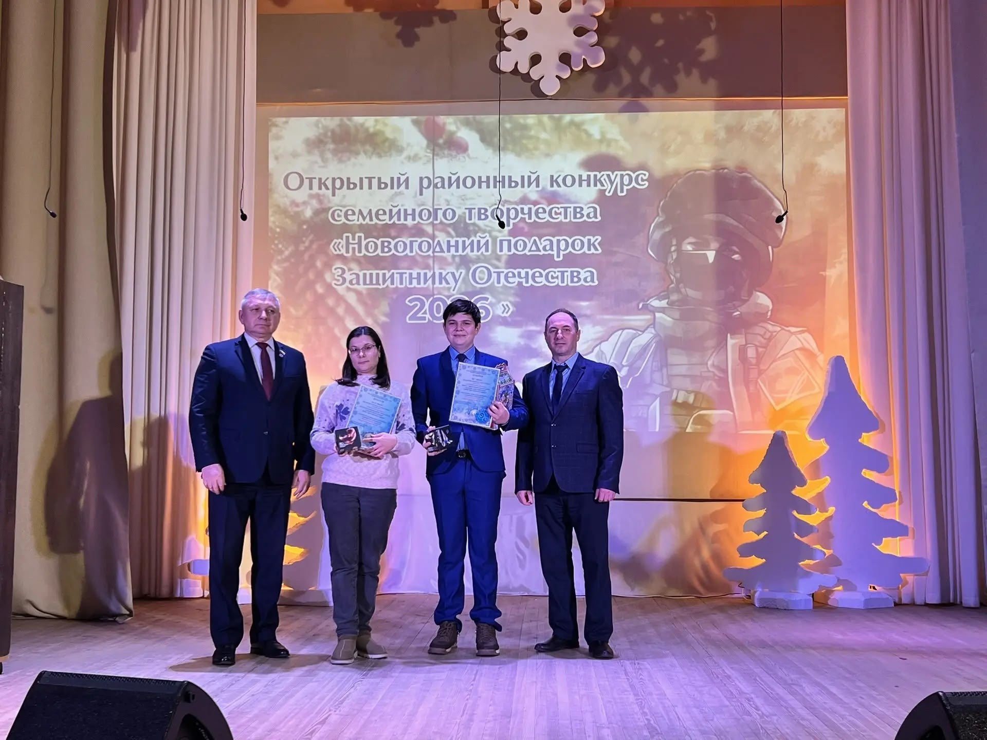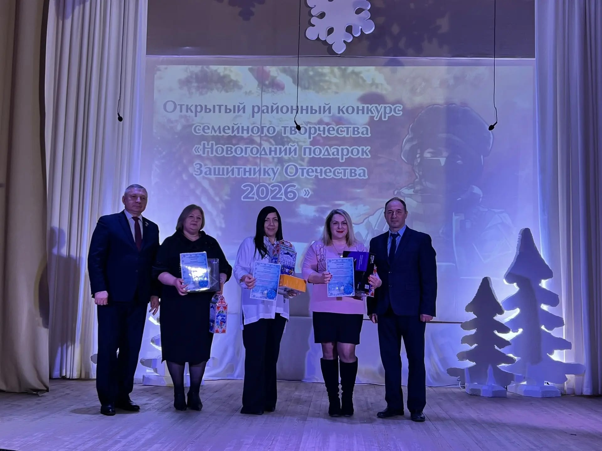 В рамках мероприятия состоялся концерт лучших творческих коллективов и исполнителей района, а также награждение победителей Открытого районного конкурса семейного творчества «Новогодний подарок Защитнику Отечества - 2026».