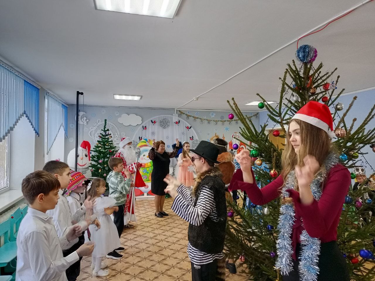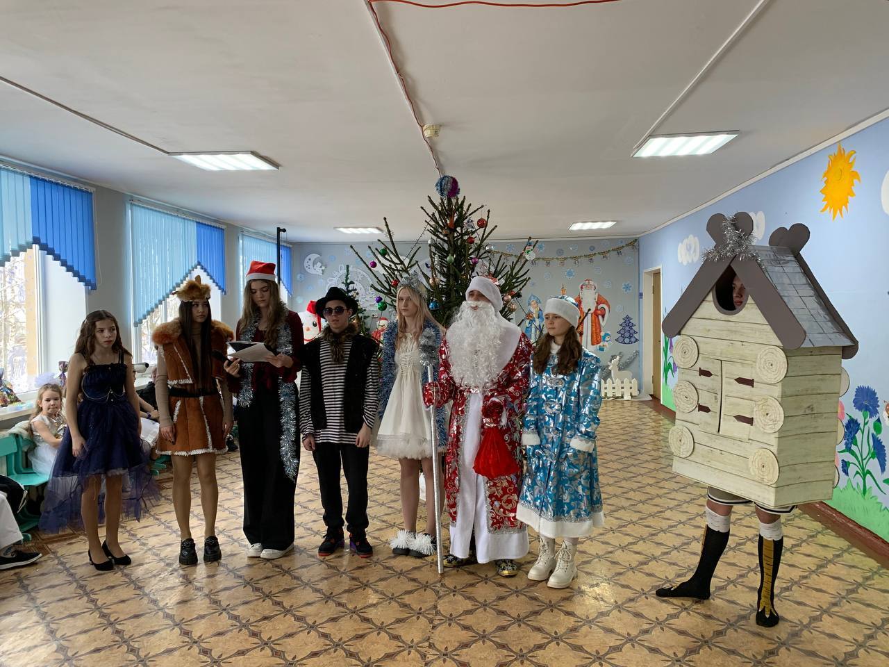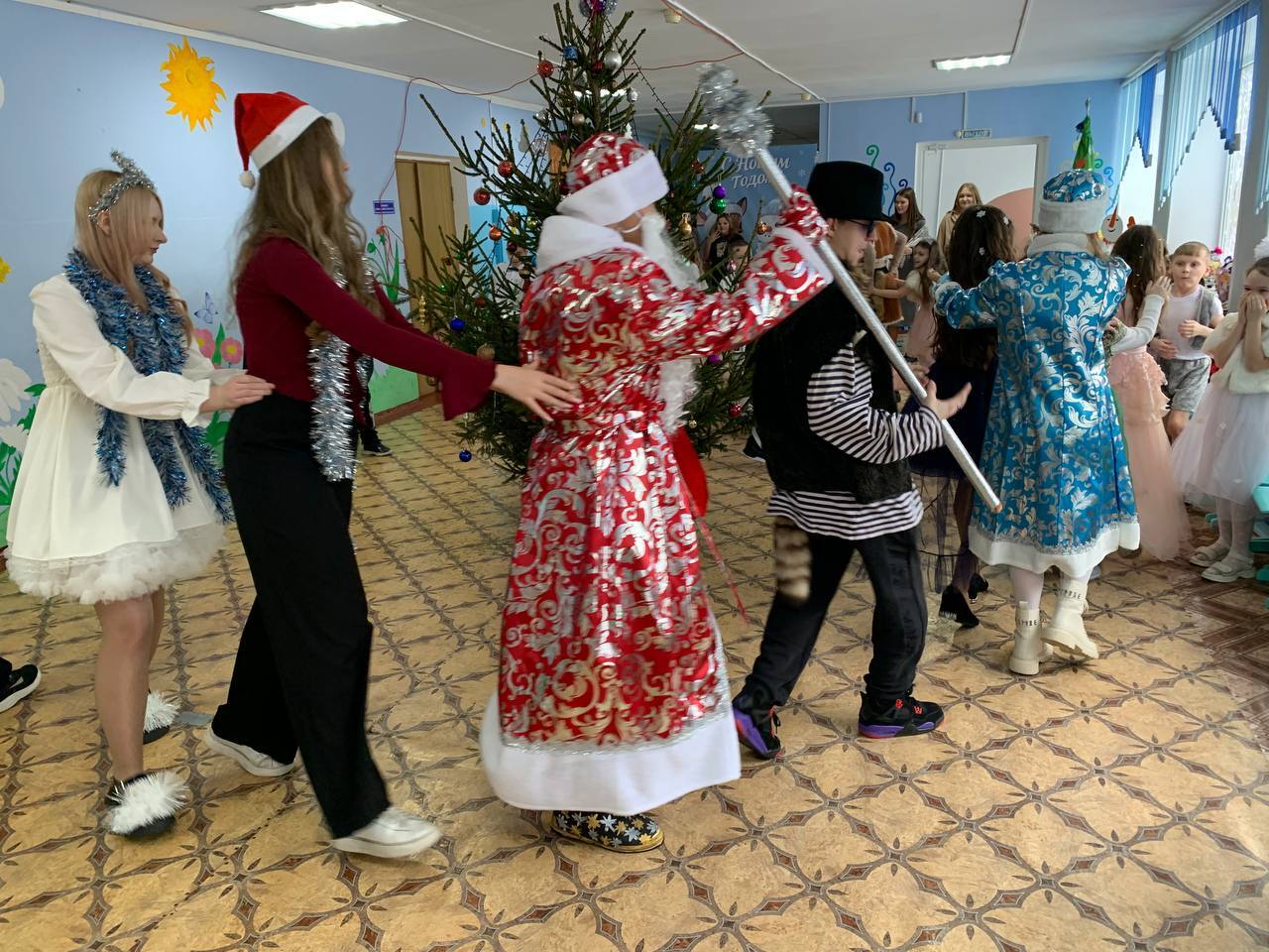 Старшеклассники подготовили новогоднюю программу для ребят и они оказались в настоящей новогодней сказке, где им встретились волшебные персонажи. На празднике звучали песни, стихи, новогодняя дискотека с конкурсами.