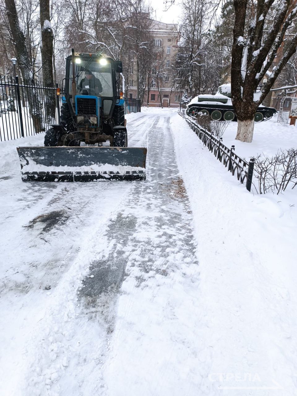 Ещё 27 человек с лопатами распределены на другие улицы, в скверы, на лестницы и пешеходные переходы. Шесть КДМ, погрузчики и самосвал обслуживают первостепенные и второстепенные дороги Советского района.