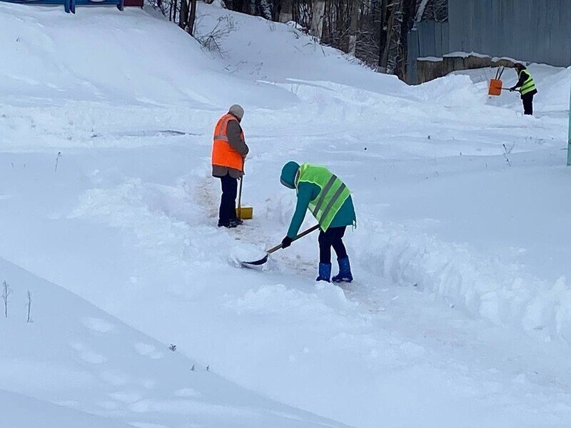 Работники МУП " Красногорский коммунальник" вышли на борьбу со снегом, несмотря на выходные праздничные дни. Где не могла пройти техника, люди трудились вручную, например, на обочинах, мосту через Полонку, спуску к пешеходному мосту через Беседь.