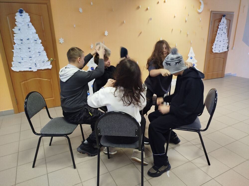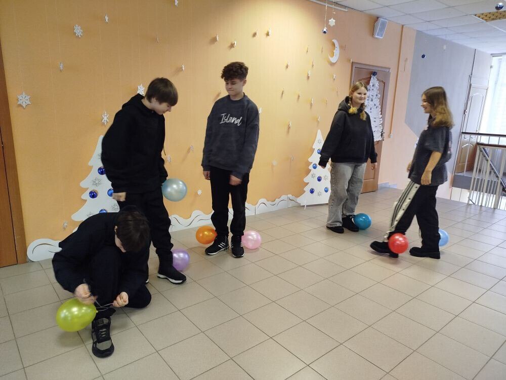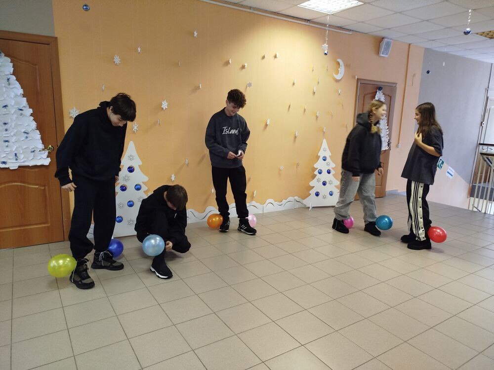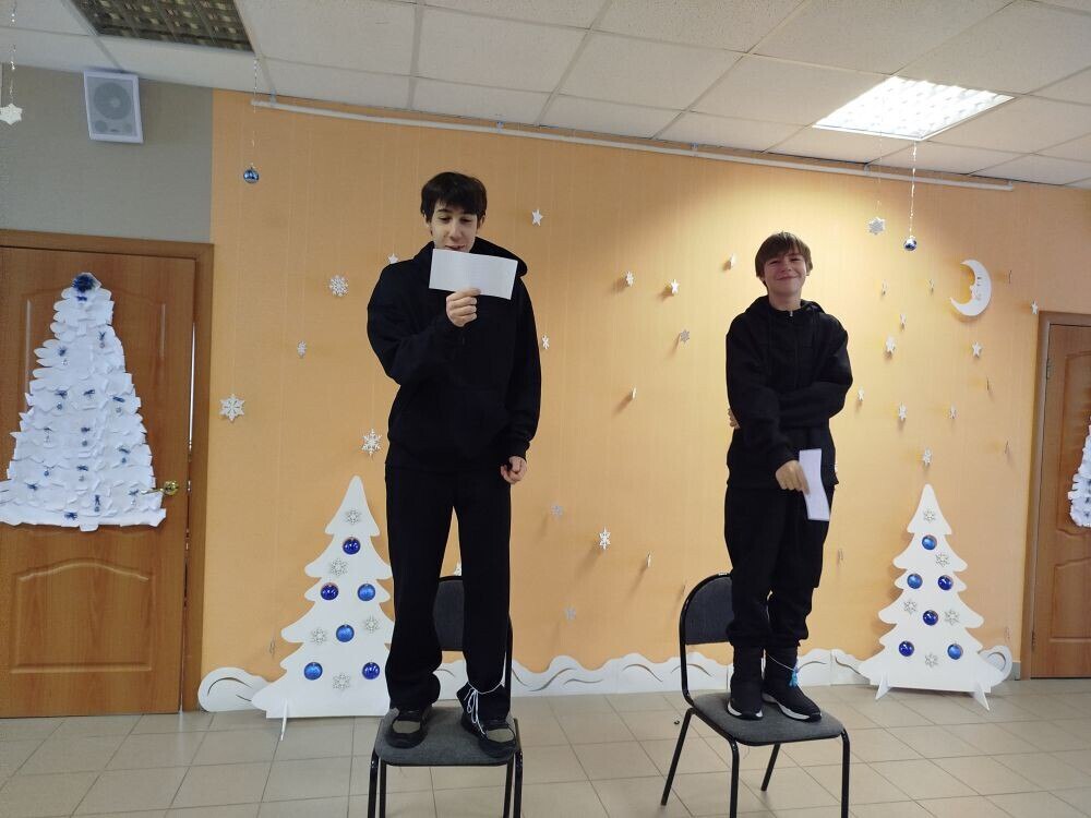 Ребята послушали гороскоп на год и получили новогодние предсказания. Они приняли участие в конкурсах: «Стихотворение», «Шарик», «Капсула предсказаний», «Стульчики».