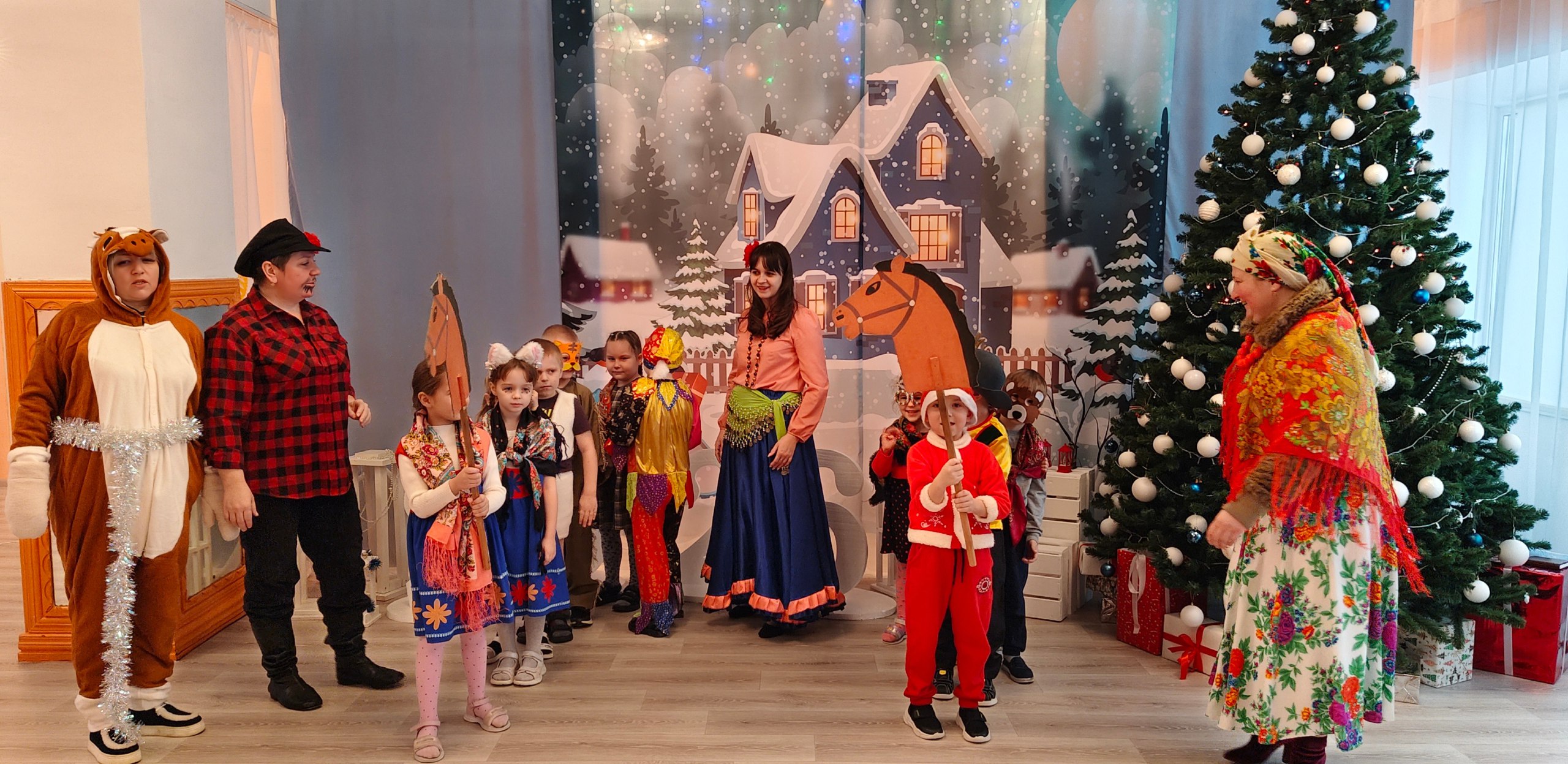 В этом году в гости к ребятам приходили Коляда со своими помощниками, Цыган с Лошадкой и Цыганка. Дети с радостью водили хороводы, пели песни, читали стихи, играли в разные игры. Но и не забыли о традициях святочных гаданий, получив возможность узнать о своих мечтах и желаниях. В конце мероприятия Хозяюшка угостила всех ребят конфетами.