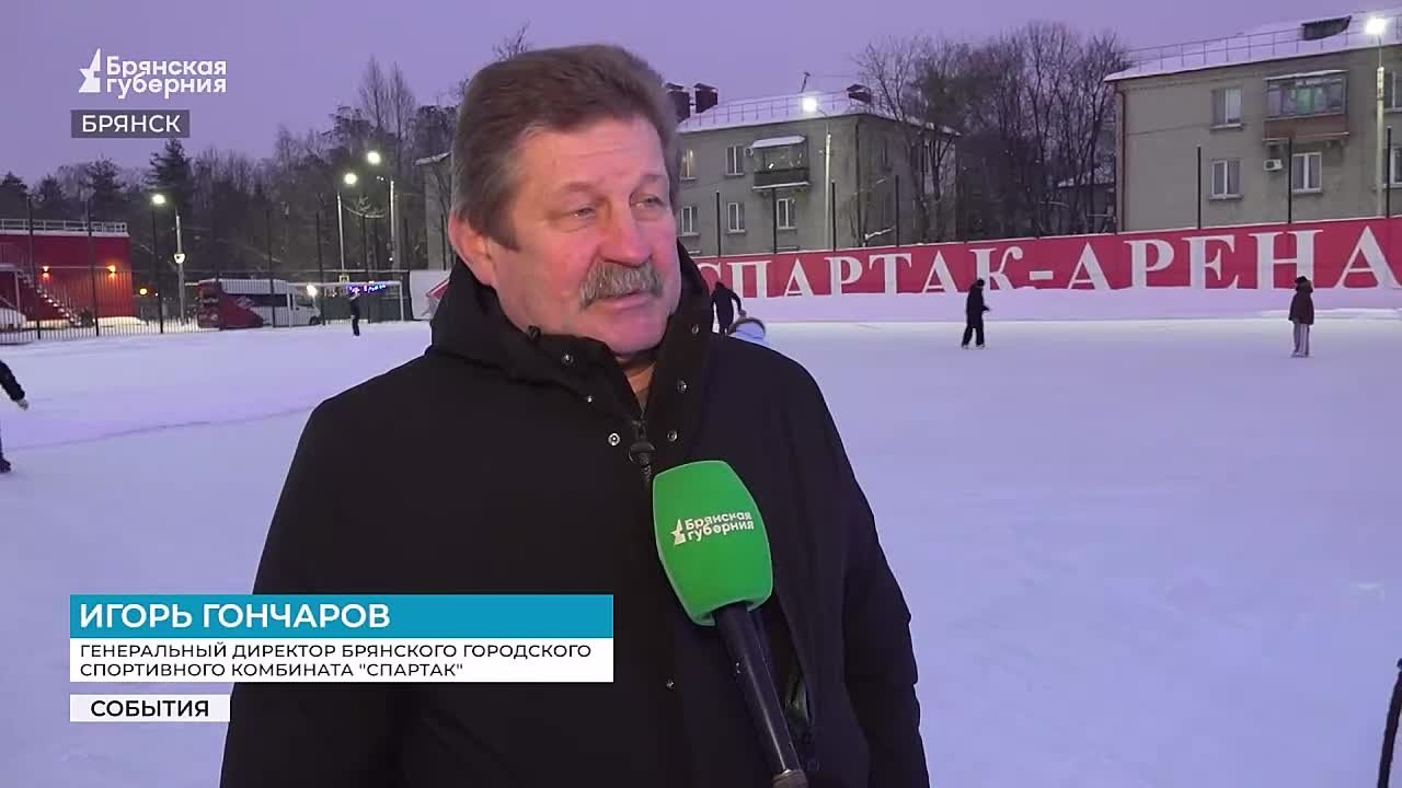 Каждый год на «Спартак-Арену» тянутся сотни брянцев, и не случайно: это действительно самая большая открытая ледовая площадка города. Поле бывшего футбольного стадиона превратилось в полноценную ледовую арену, залитую в течение почти всех праздничных дней.