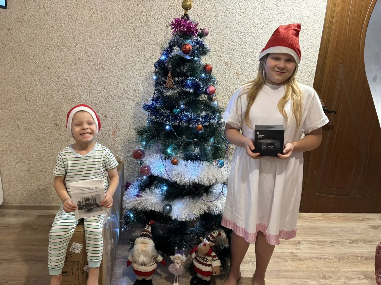 Также сбылись мечты брата и сестры, проживающих в г. Новозыбкове Брянской области. 4-летнему Александру приобрели батут, а 9-летняя Виктория осталась в восторге от умной колонки.