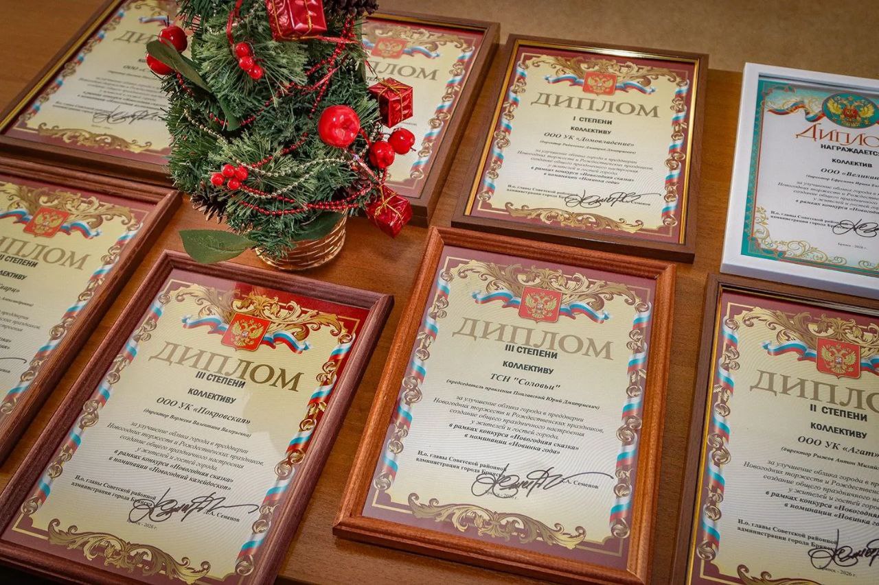 В администрации Советского района подвели итоги ежегодного муниципального конкурса «Новогодняя сказка». В нём приняли участие 10 управляющих компаний района. Они украсили витрины, фасады зданий, подъезды и дворовые территории.