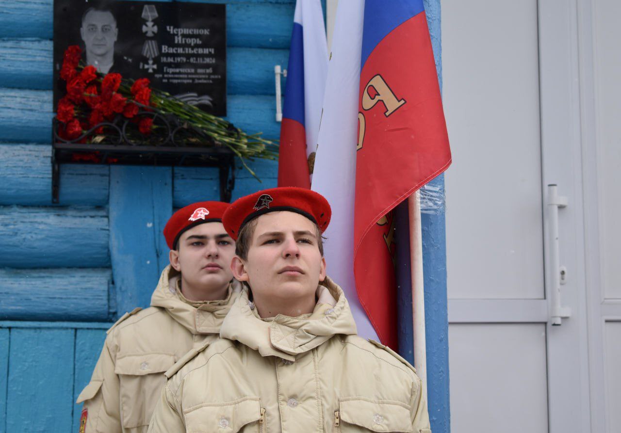 Сегодня глава администрации Клинцовского района Л.И.Максименко приняла участие в открытии мемориальной доски нашему земляку, участнику специальной военной операции из села Мартьяновка Черненку Игорю Васильевичу.