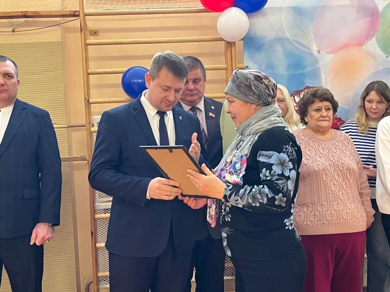 В ходе торжественного мероприятия Александр Викторович Постоялко и Александр Геннадьевич Юркин вручили Благодарственное письмо из войсковой части супруге действующего военнослужащего СВО Чичевой Екатерине Ильиничне.
