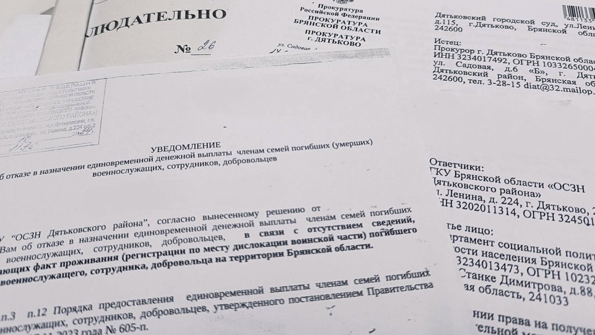 Прокуратура защитила права матери брянского героя на материальную помощь