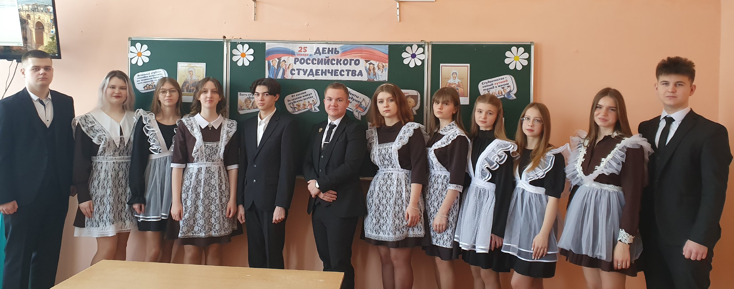 23 января в 10-11 классах в МБОУ – СОШ №5 в рамках празднования Дня студента классным руководителем Писаревской Н.Л. был организован тематический час «"День студента: традиции и современность", целью которого стало знакомство обучающихся с историей и традициями этого важного события, а также мотивация к активной деятельности и саморазвитию.