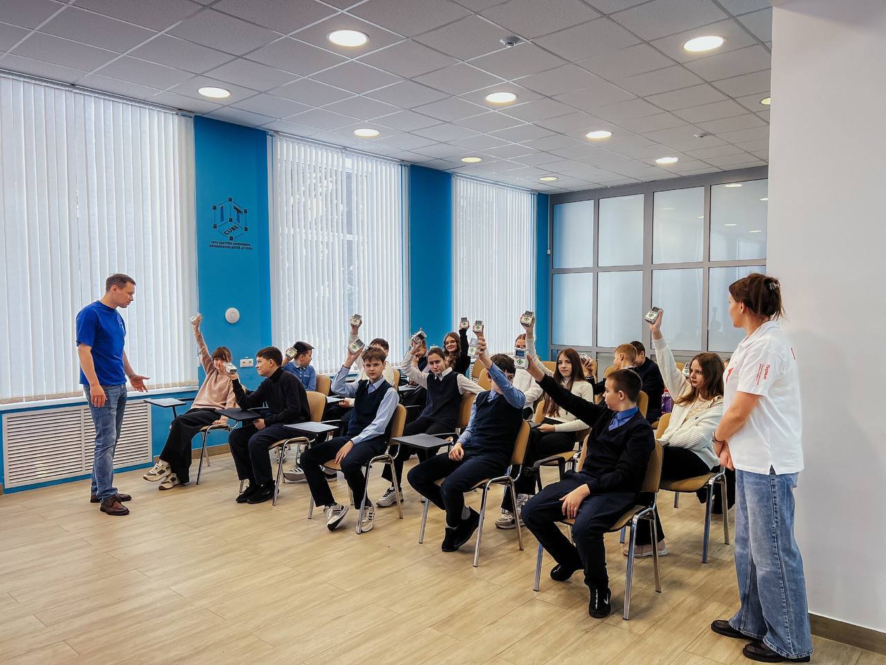 Первыми его участниками стали ученики 6в класса МБОУ ДСОШ №1, в сопровождении классного руководителя - Кулага Татьяны Ивановны. Их первое погружение в мир высоких технологий было более чем впечатляющим!