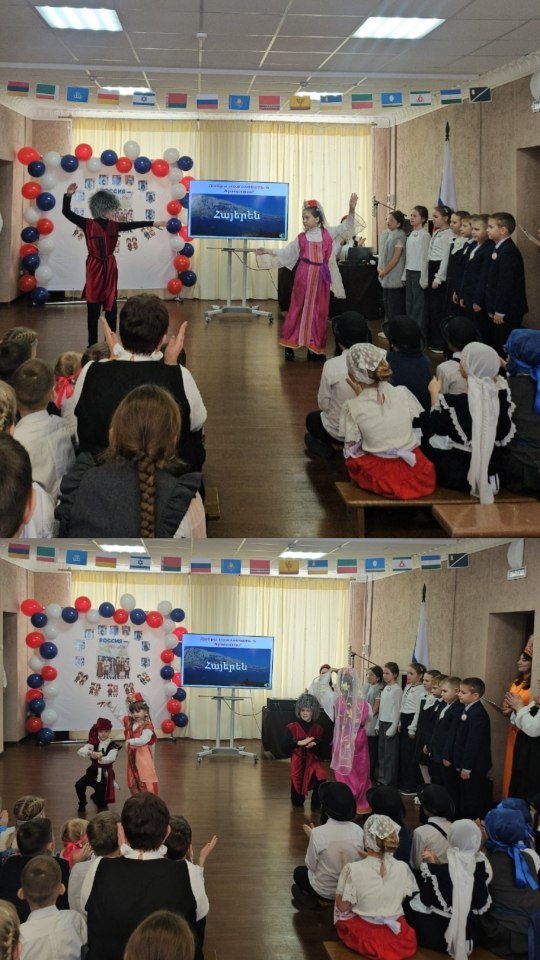 Ярким и колоритным стало выступление третьего класса и старшей группы, которые представили Армению. Зрители увидели зажигательный армянский казачий танец в аутентичных костюмах, трогательную сцену встречи русского и армянского народов и даже узнали правила национальной игры «Волк и овцы».