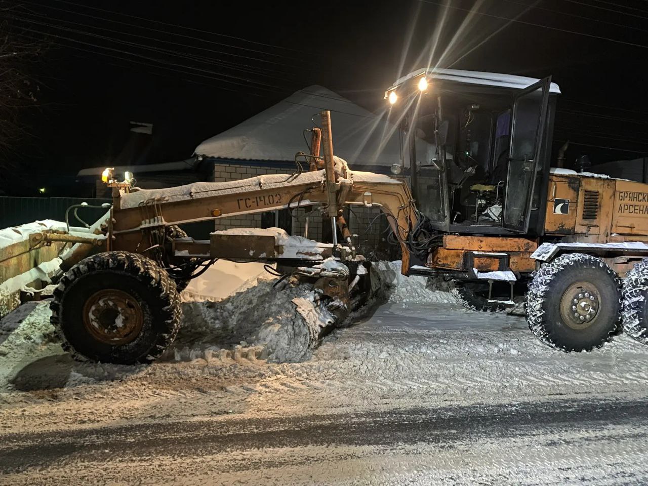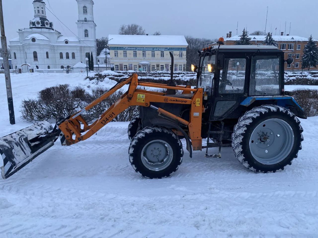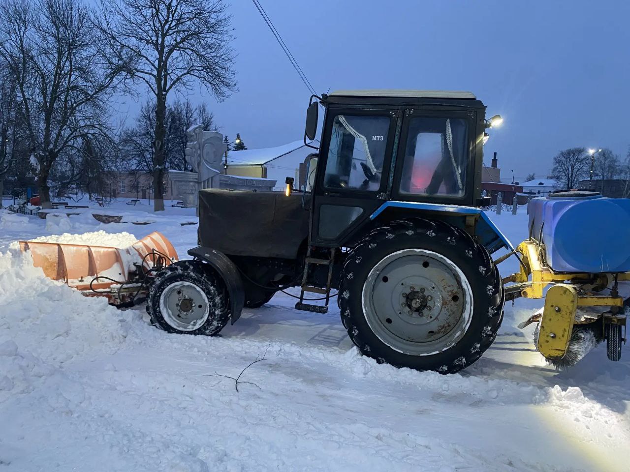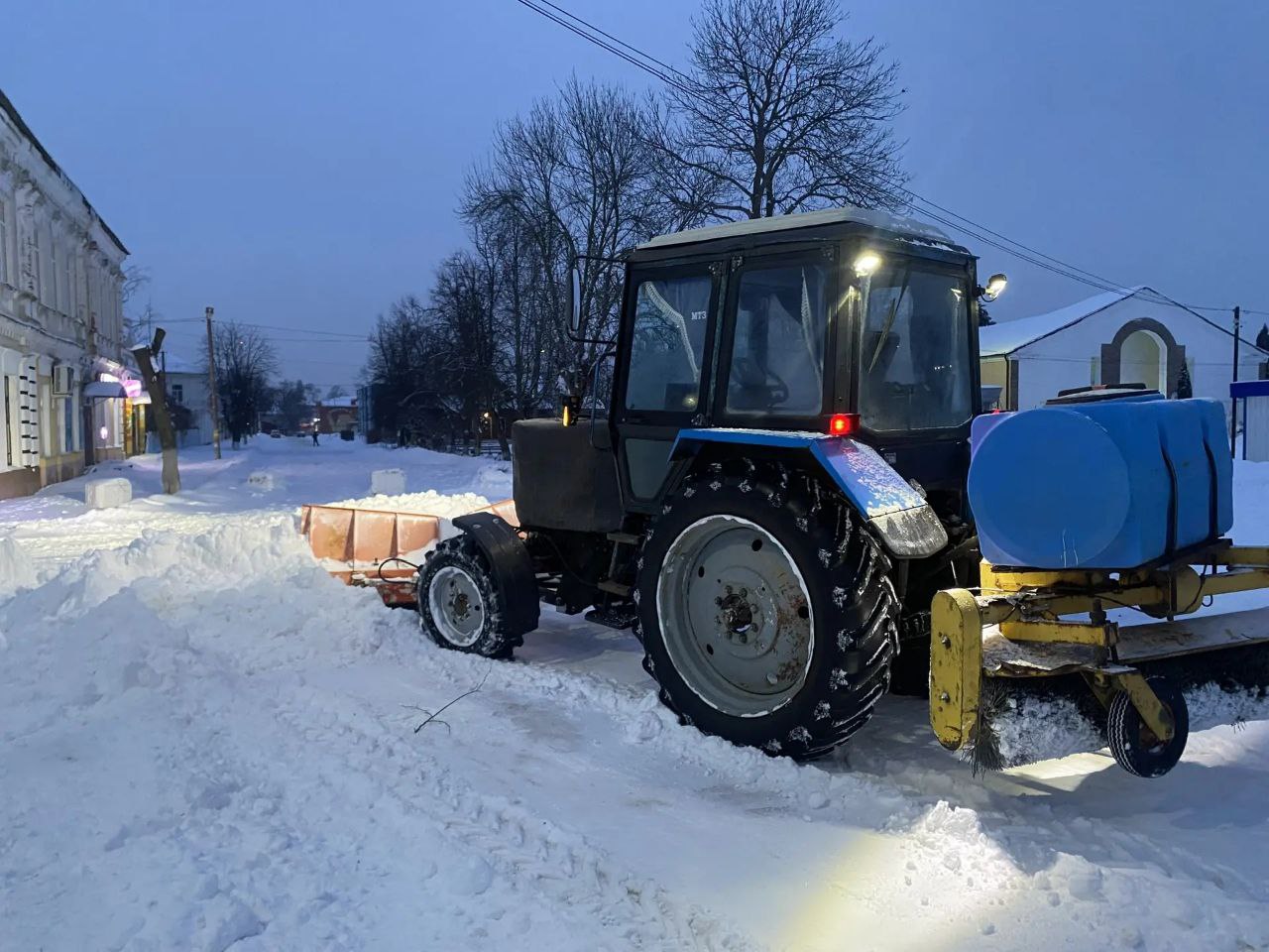 На территории Почепского района с пяти утра проводятся работы по расчистке от снега общественных территорий