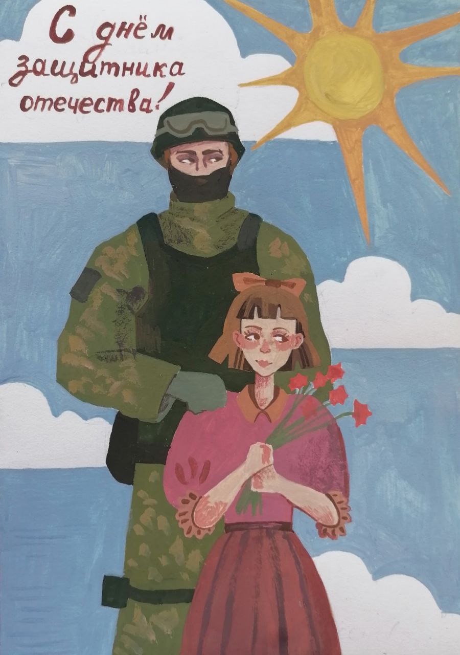 Студенты отделения изобразительного искусства специальностей "Дизайн" и "Живопись" подготовили открытки ко Дню защитника Отечества