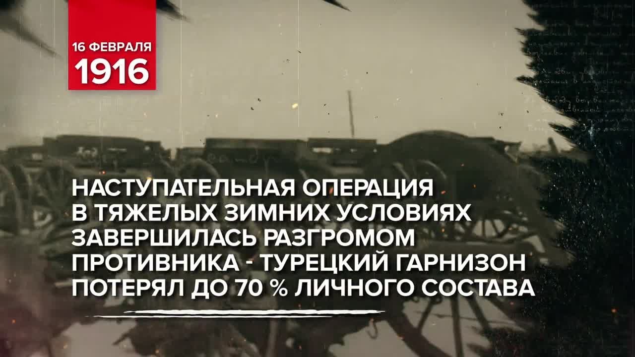 16 февраля 1916 года на Закавказском фронте Первой Мировой войска генерала Юденича взяли турецкую крепость Эрзерум.