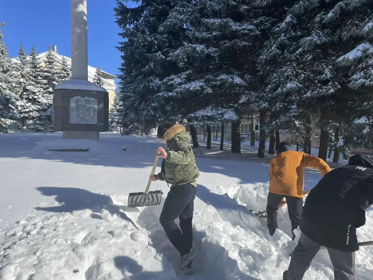 Сильный снегопад заставил десятиклассников снова выйти на территорию мемориала, чтобы привести его в порядок.