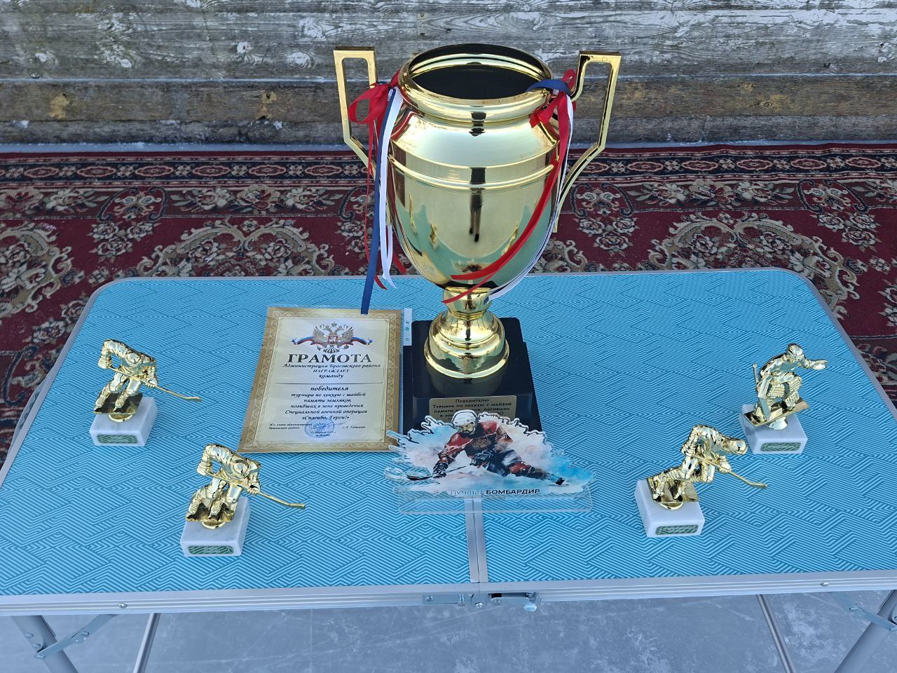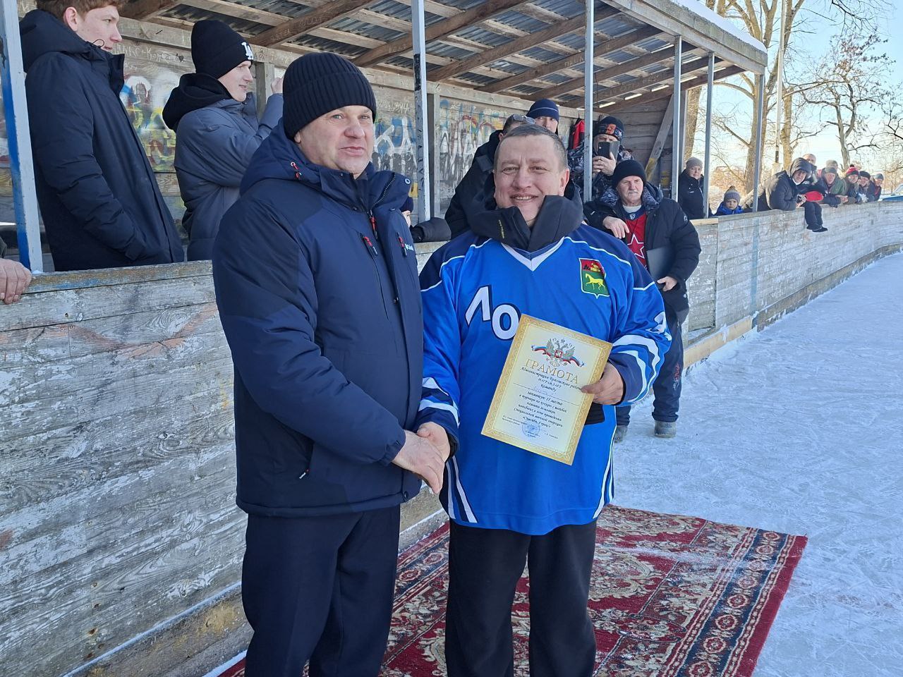В п.Локоть в канун Дня защитника Отечества состоялся турнир по хоккею с шайбой памяти земляков, погибших в зоне проведения специальной военной операции "Спасибо, Герои!". Команды "Локоть-1", "Локоть-2" и "Брянскнефтепродукт" продемонстрировали яркую, честную игру, подарили болельщикам незабываемые эмоции, а солнечная с морзцем погода добавила хорошего настроения в этот субботний день. Кубок победителя глава района Сергей Федорихин вручил по итогу игры команде из Брянска. Специальными призами отмечены лучший вратарь, нападающий, защитник, бомбардир и болельщик, которым признан юный и активный Иван Болотин