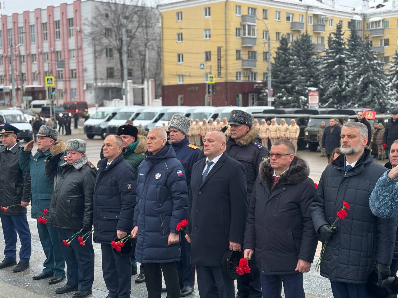 В День защитника Отечества на площади Партизан в Брянске состоялась церемония возложения цветов к Вечному огню.