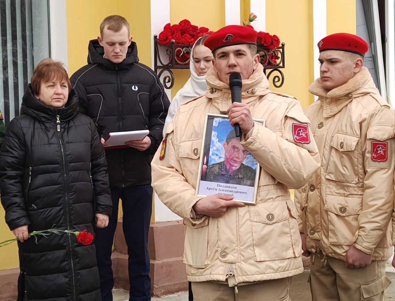 Сегодня в МОУ-СОШ №2 прошёл торжественный митинг, посвящённый открытию мемориальной доски выпускнику школы Позднякову Артёму, погибшему при выполнении воинского долга в ходе специальной военной операции на Украине.